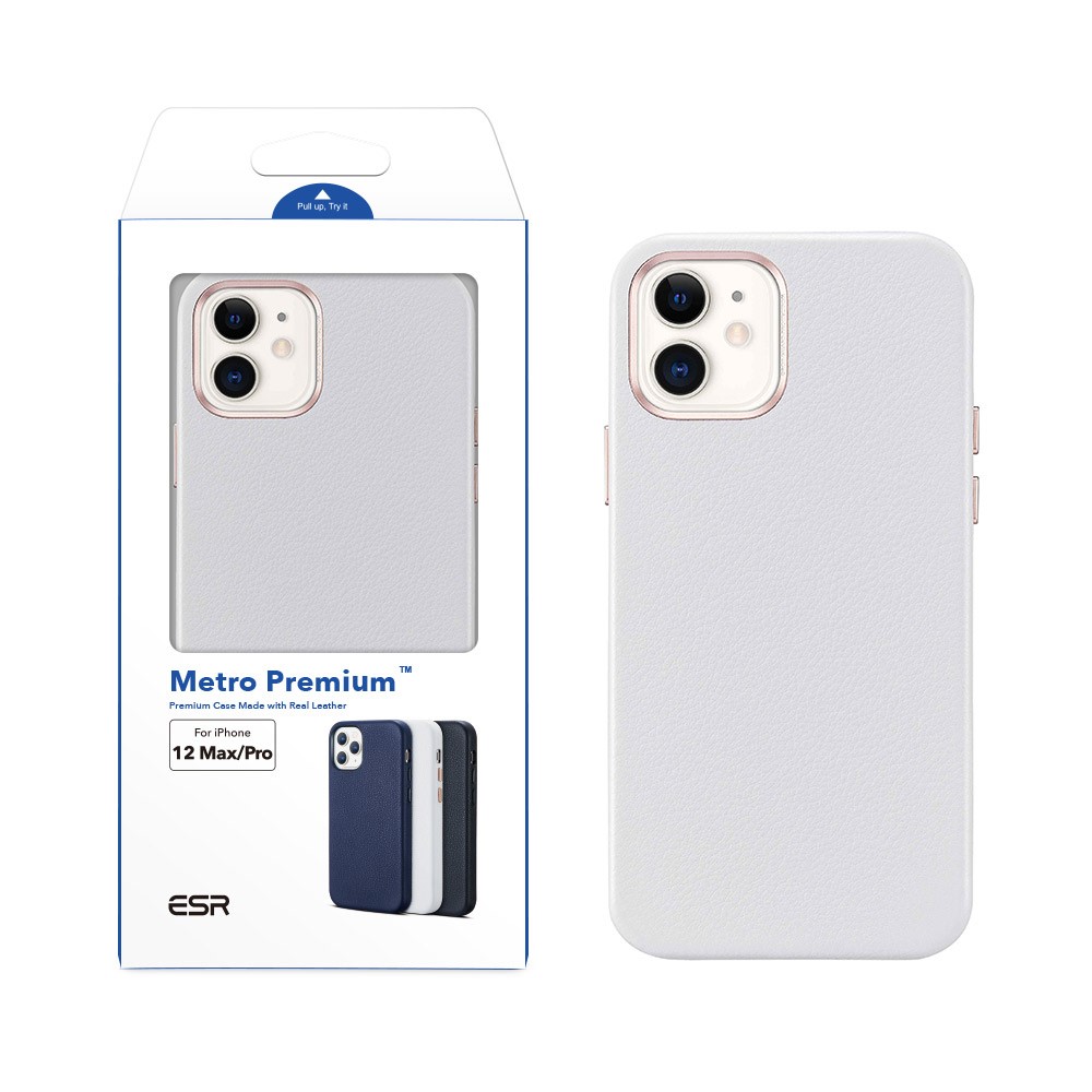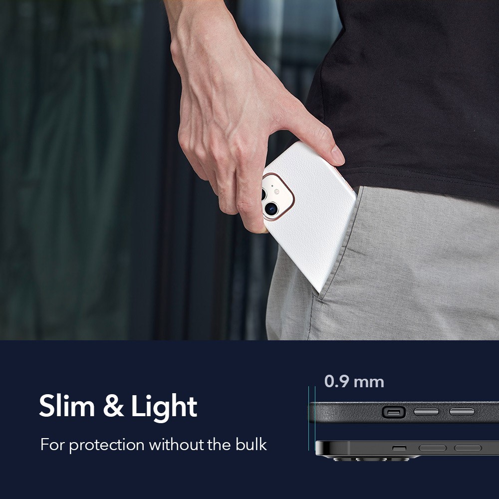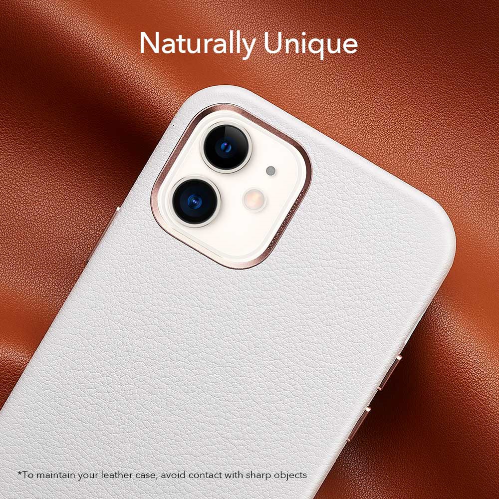 ESR Shockproof Genuine Leather Phone Case Protector for iPhone 12 mini – White