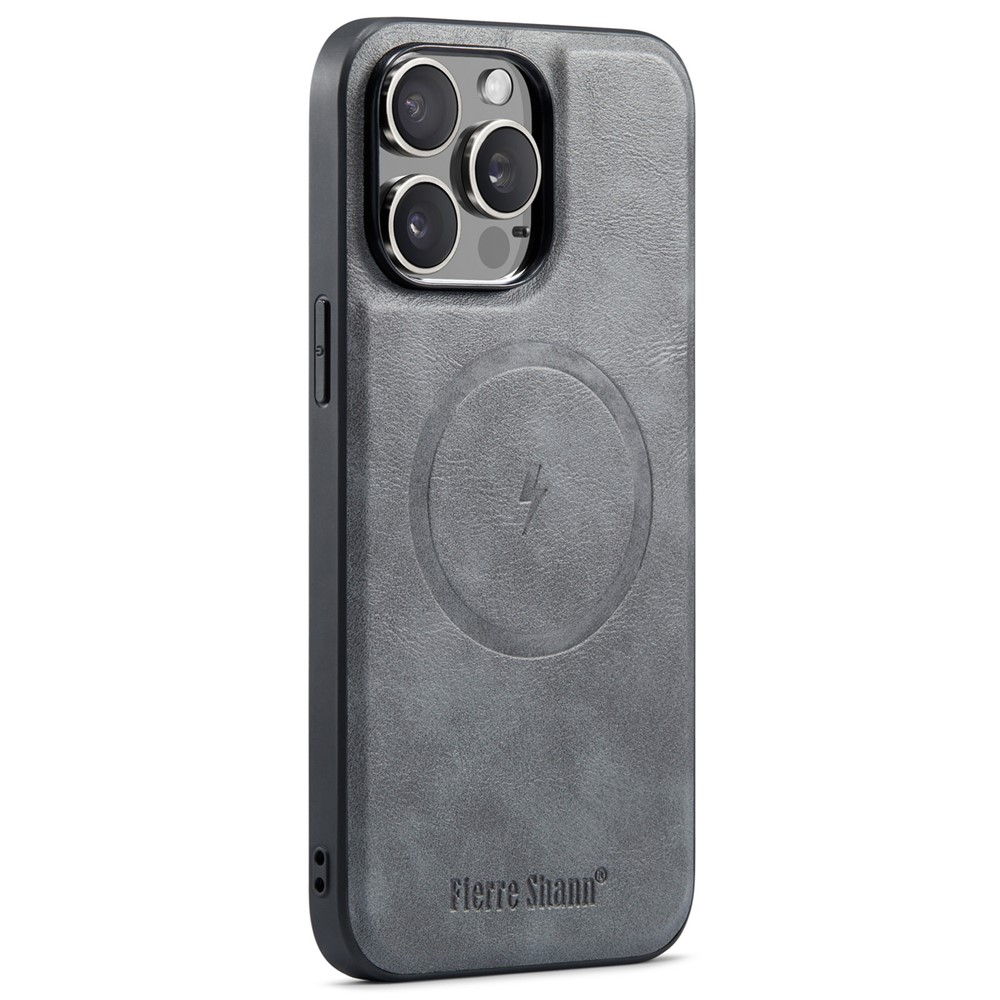 FIERRE SHANN 025 Style For iPhone 13 Pro Case PU+TPU Phone Cover with Kickstand and Card Bag – Grey