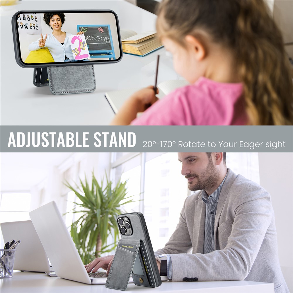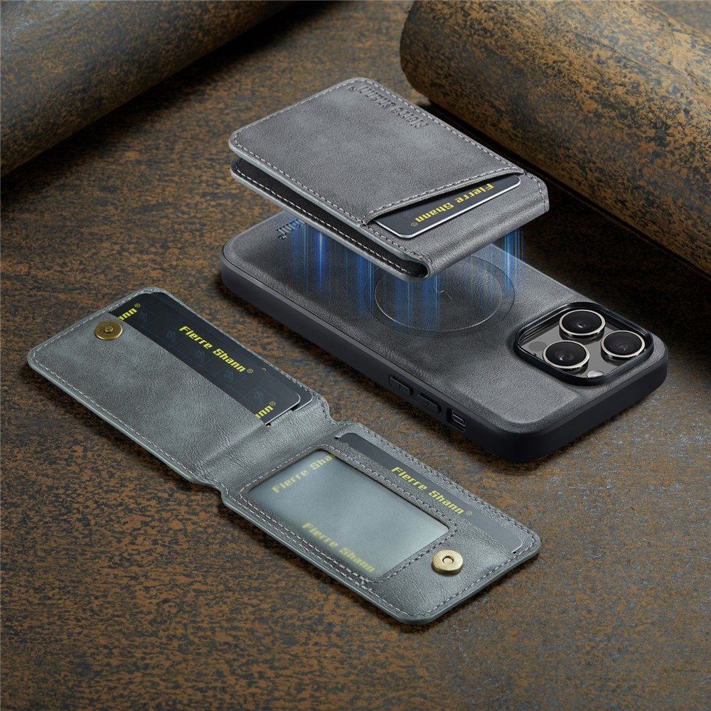 FIERRE SHANN 025 Style For iPhone 13 Pro Case PU+TPU Phone Cover with Kickstand and Card Bag - Grey $20.86