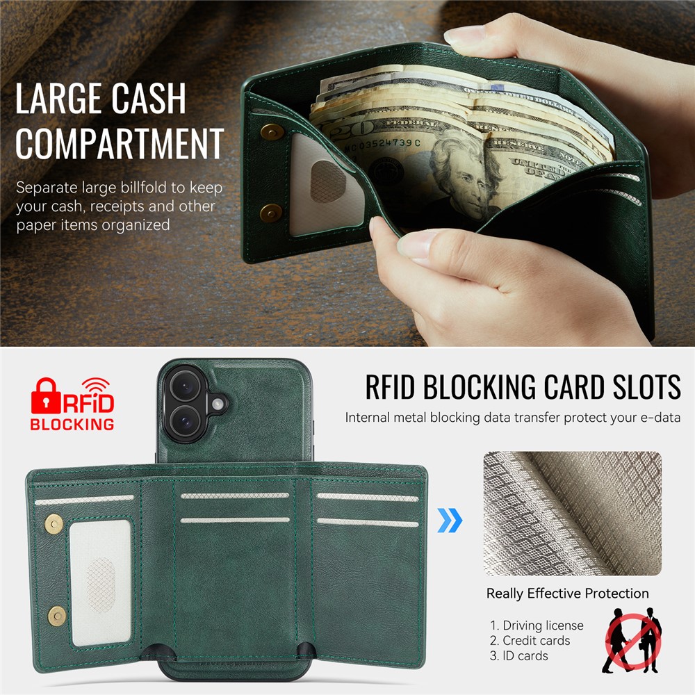 - Magnetic Wallet Function Features a detachable tri-fold wallet with multiple card slots, a cash pocket, and coin storage, keeping your essentials organized and secure.