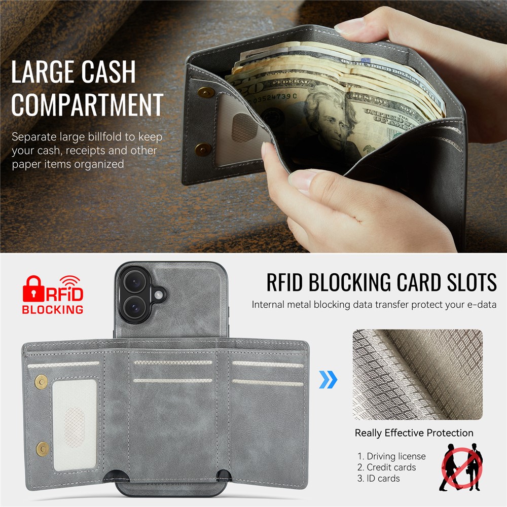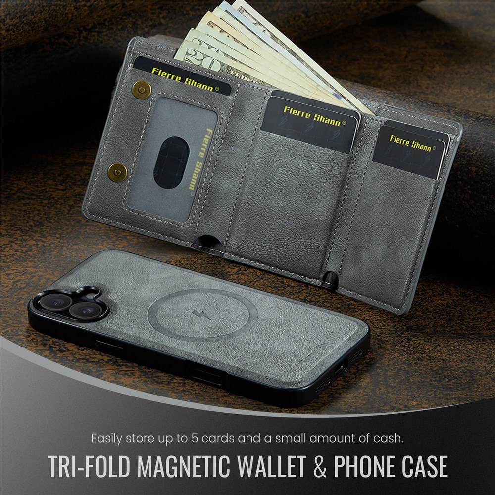 - Magnetic Wallet Function Features a detachable tri-fold wallet with multiple card slots, a cash pocket, and coin storage, keeping your essentials organized and secure.