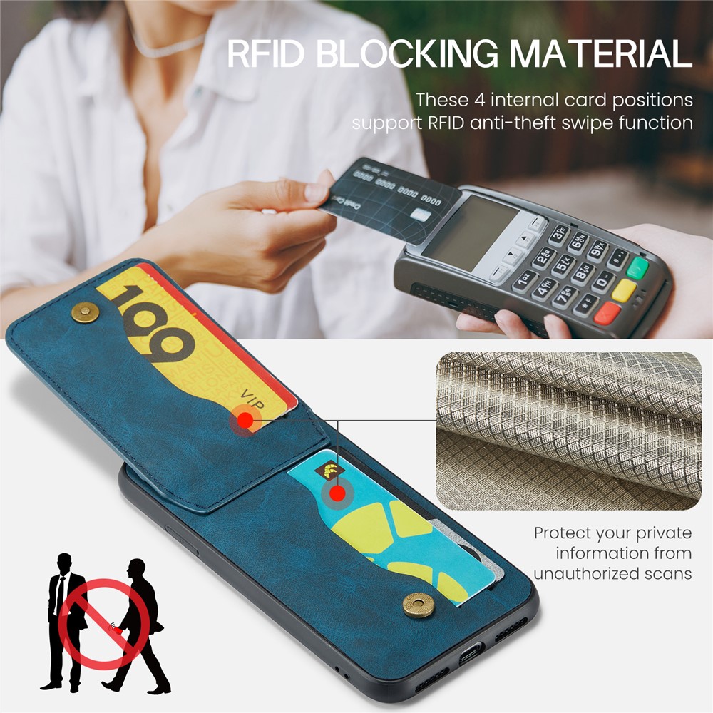 - RFID Blocking Equipped with 4 internal card slots and 1 external slot, the case provides RFID anti-theft swipe protection, securing your personal information from unauthorized scans