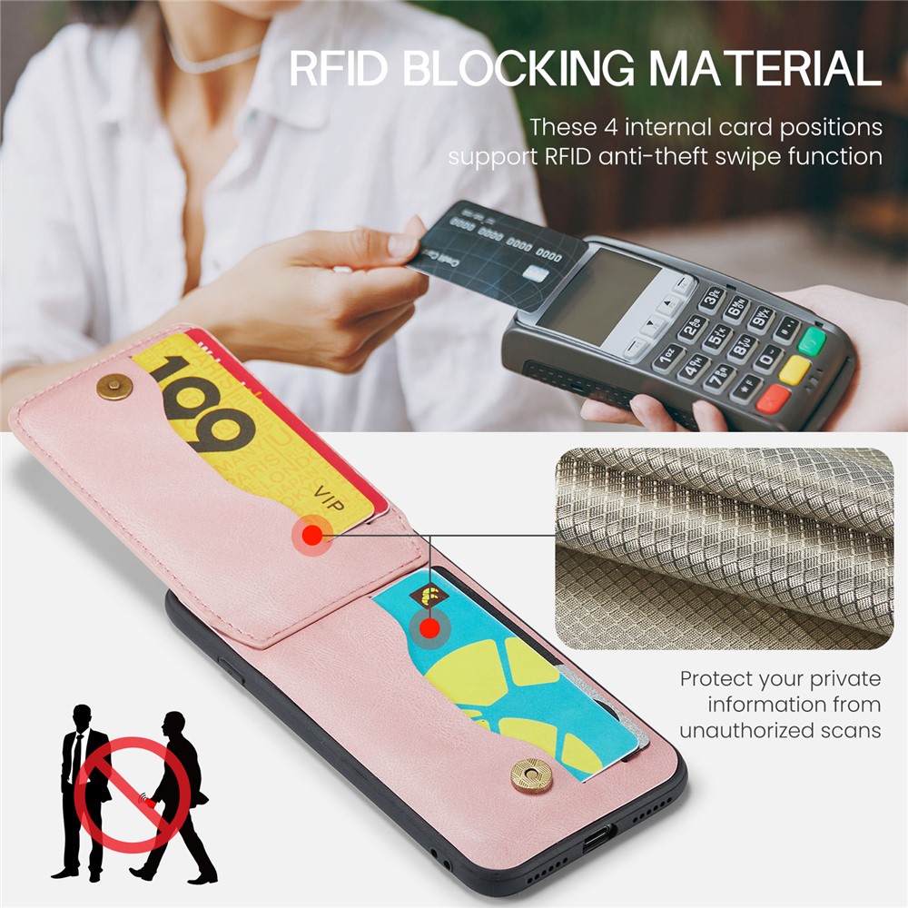 - RFID Blocking Equipped with 4 internal card slots and 1 external slot, the case provides RFID anti-theft swipe protection, securing your personal information from unauthorized scans