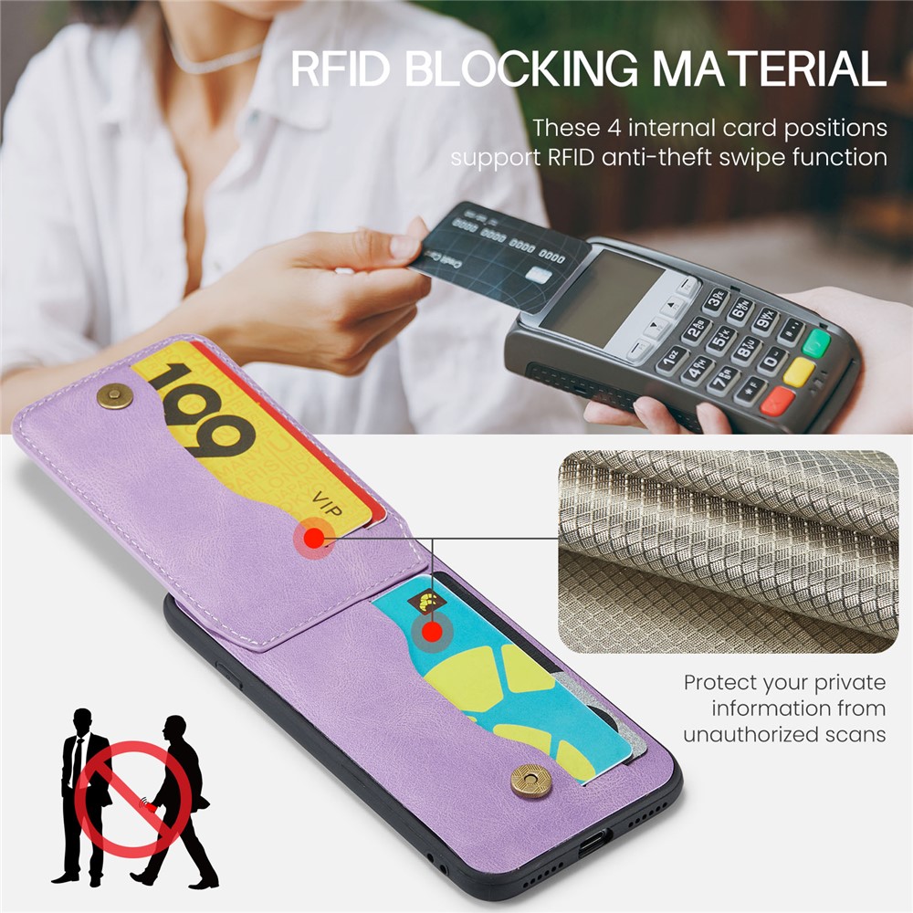 - RFID Blocking Equipped with 4 internal card slots and 1 external slot, the case provides RFID anti-theft swipe protection, securing your personal information from unauthorized scans