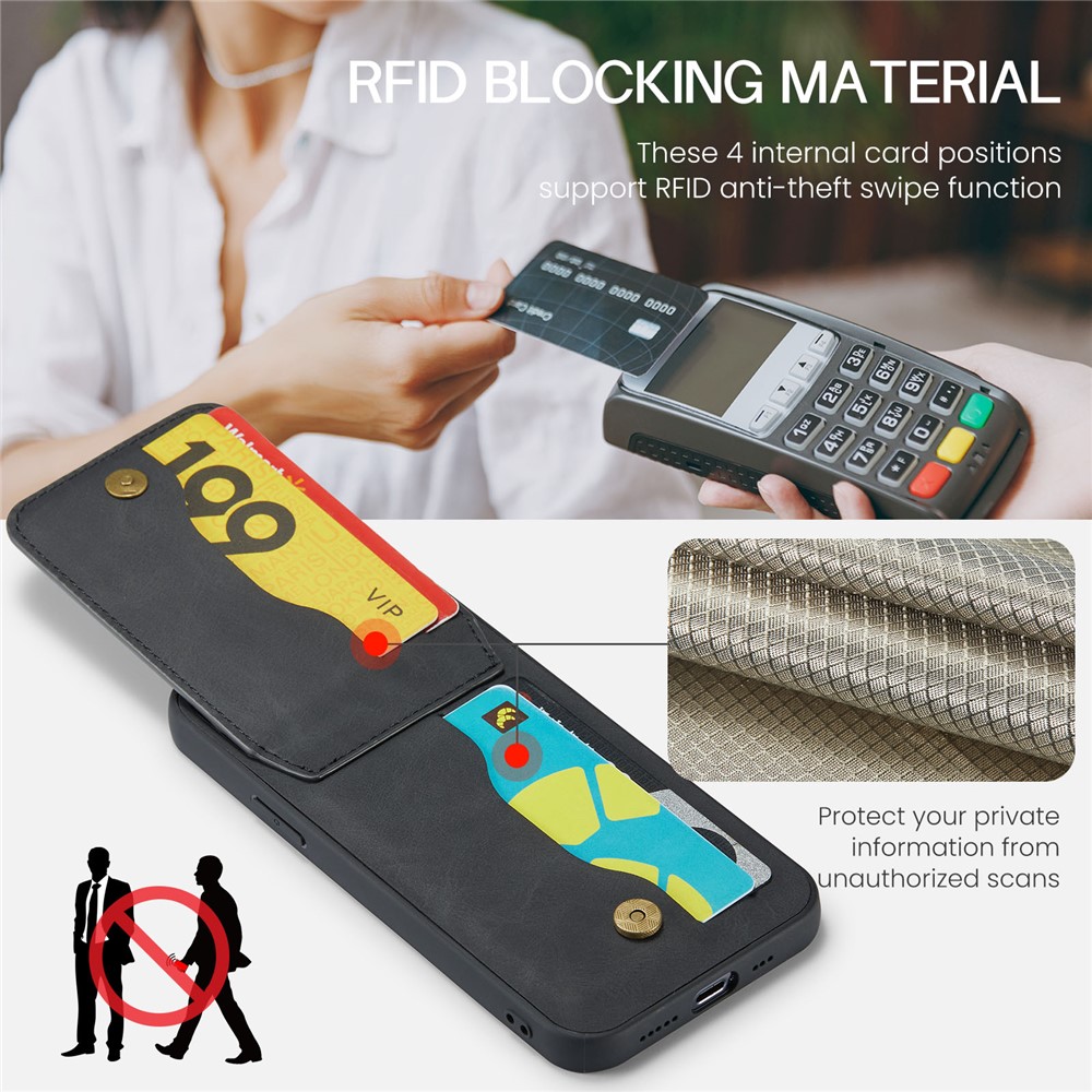 - RFID Blocking Equipped with 4 internal card slots and 1 external slot, the case provides RFID anti-theft swipe protection, securing your personal information from unauthorized scans