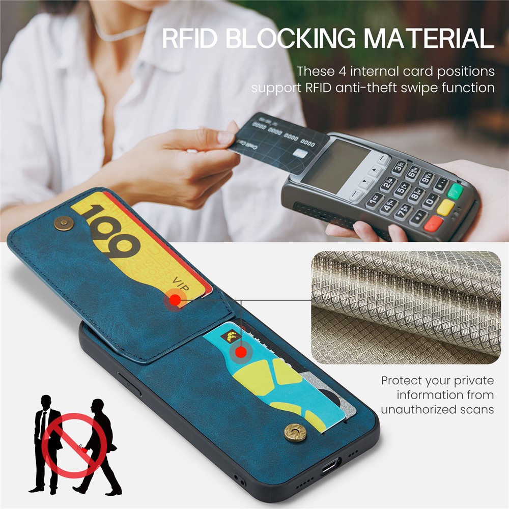 - RFID Blocking Equipped with 4 internal card slots and 1 external slot, the case provides RFID anti-theft swipe protection, securing your personal information from unauthorized scans