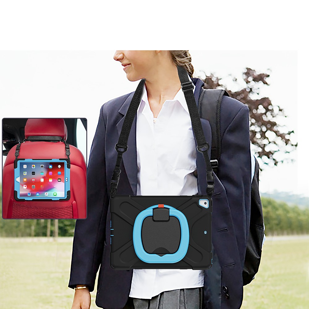 Flexible Tablet Cover with 360 Degree Swivel Kickstand + Shoulder Strap (B Style) for iPad 9.7-inch (2017) / (2018) / Air 2 – Black / Grey