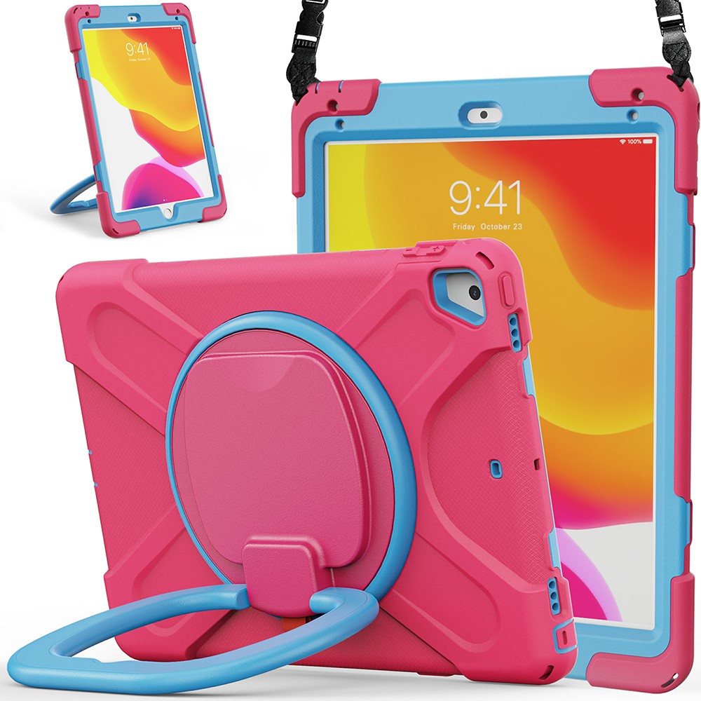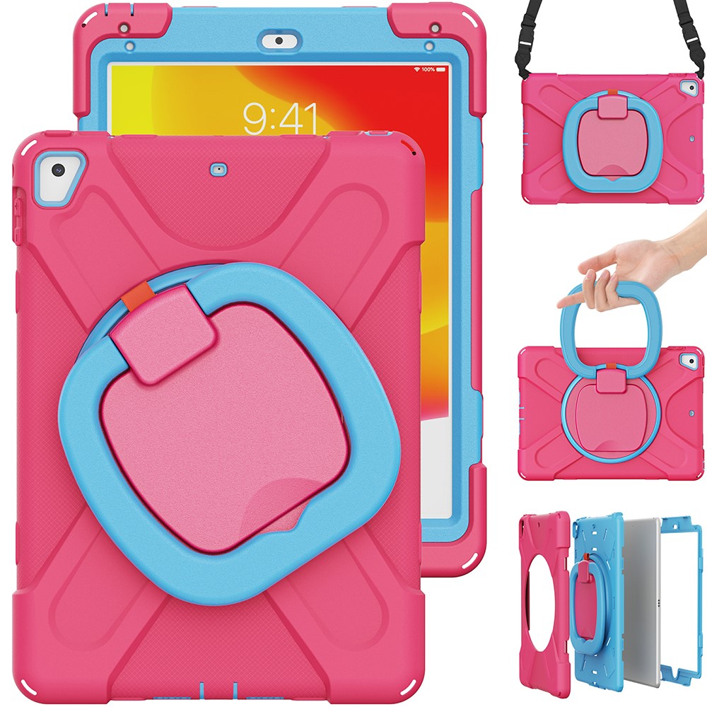 Flexible Tablet Cover with 360 Degree Swivel Kickstand + Shoulder Strap (B Style) for iPad 9.7-inch (2017) / (2018) / Air 2 – Rose / Sky Blue