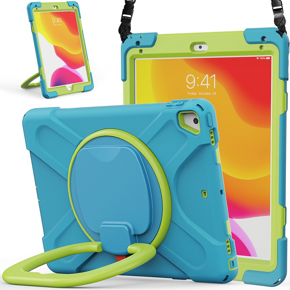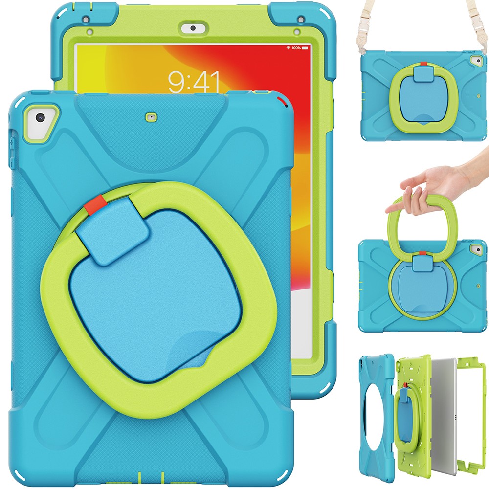 Flexible Tablet Cover with 360 Degree Swivel Kickstand + Shoulder Strap (B Style) for iPad 9.7-inch (2017) / (2018) / Air 2 – Sky Blue / Green