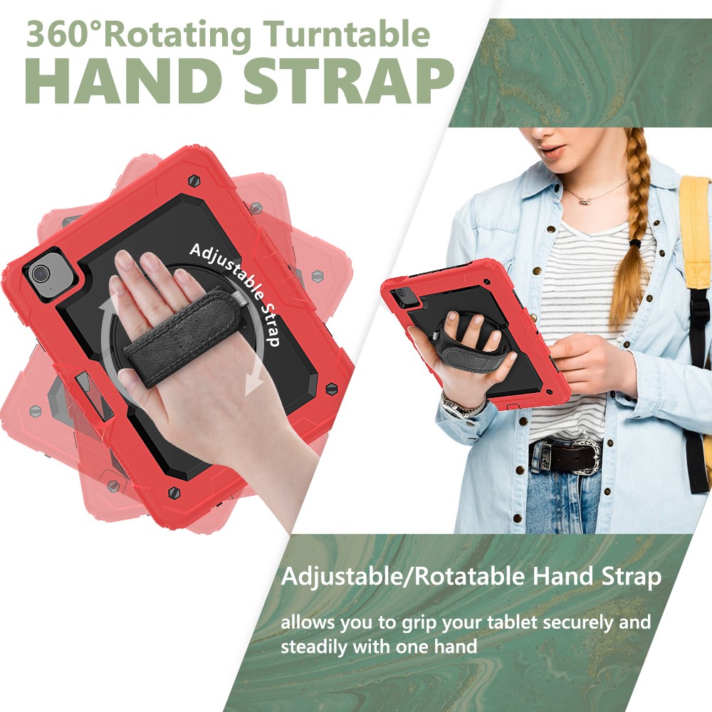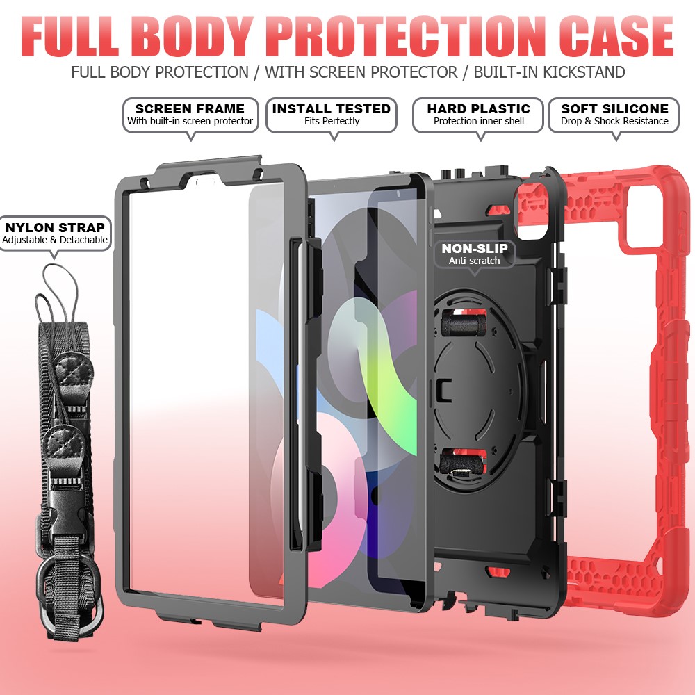 Impact-resistant design and shock absorbing silicone + plastic inner shell + PC screen frame with built-in PET protector film, 360 degrees protecting against accidental drops and falls.