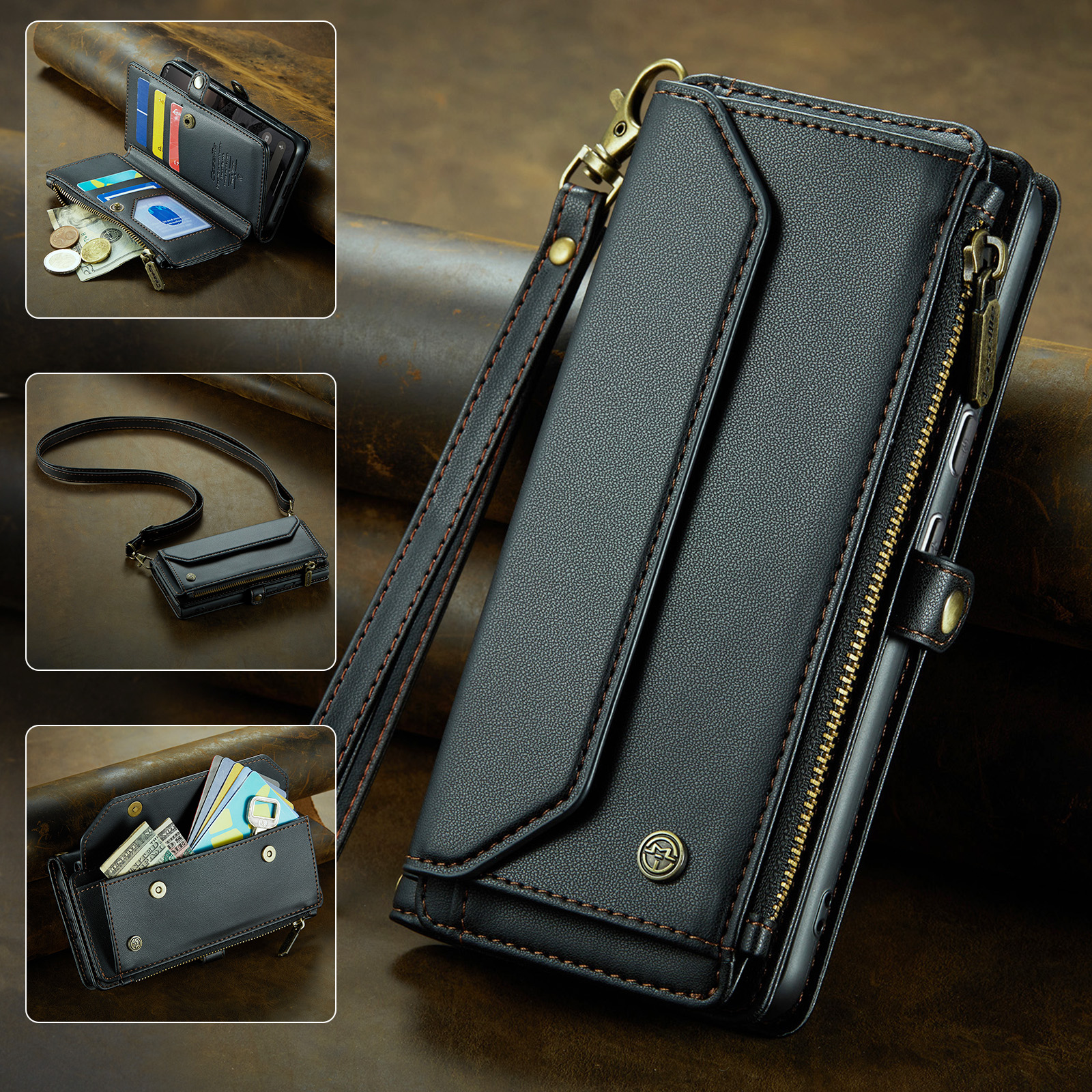 For Google Pixel 10 Pro / 10 / 9 Pro / 9 Leather Case CASEME C36 Zipper 10 Card Slots Phone Cover with Straps – Black