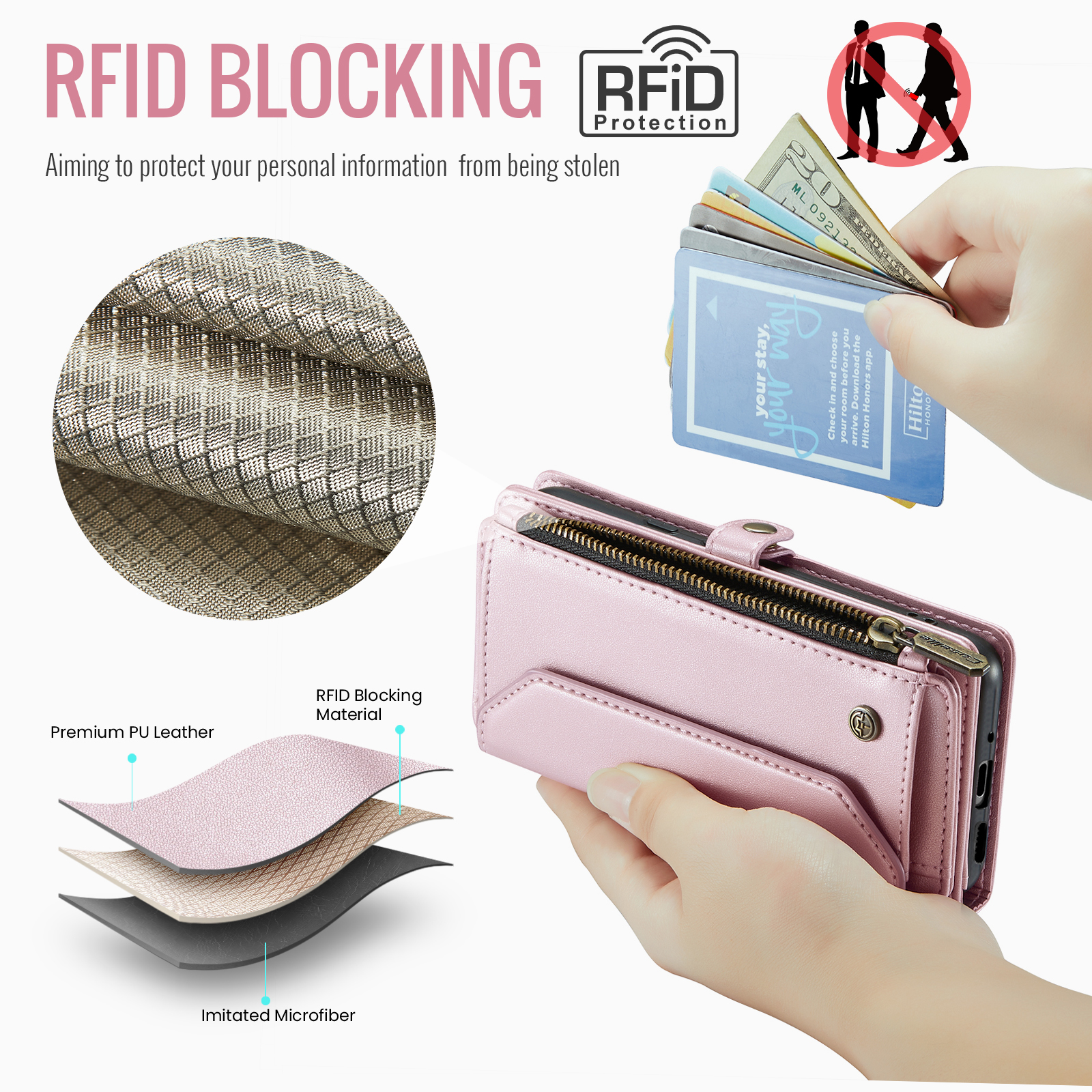 RFID Blocking Protection Equipped with advanced RFID blocking technology to protect your cards from unauthorized scans, ensuring your personal information stays secure