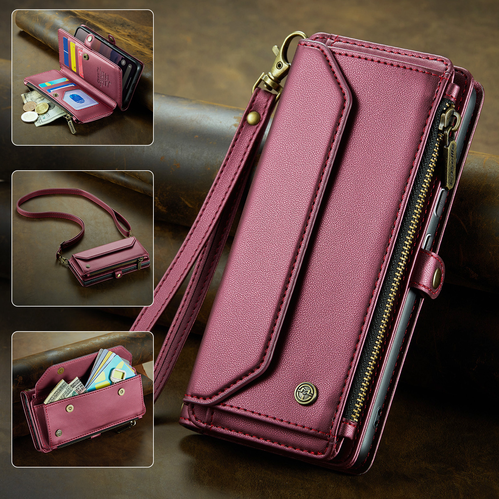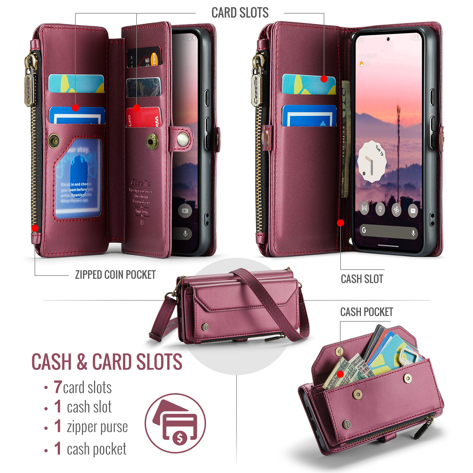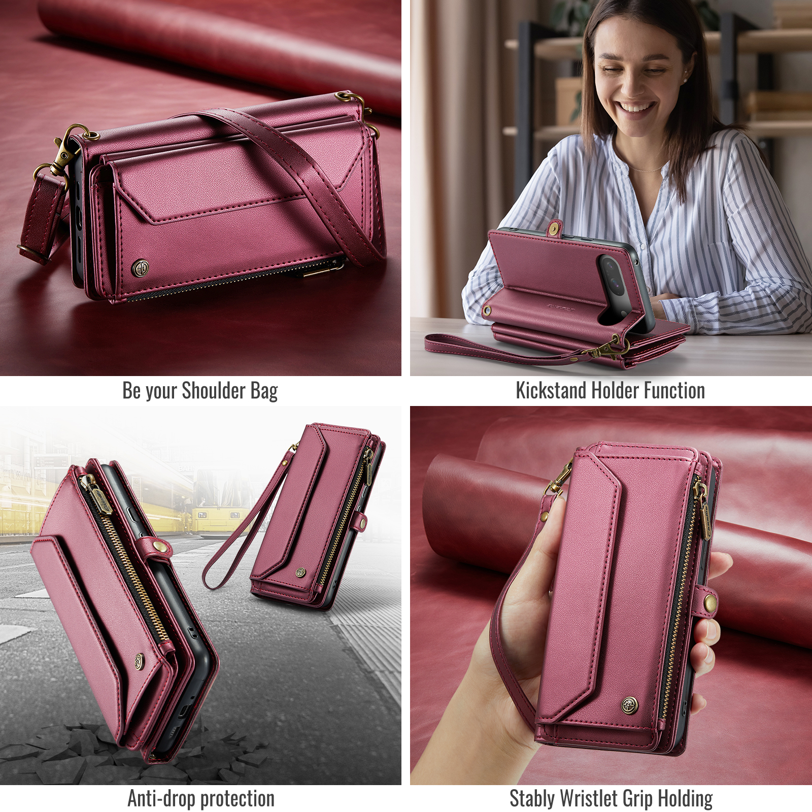 For Google Pixel 10 Pro / 10 / 9 Pro / 9 Leather Case CASEME C36 Zipper 10 Card Slots Phone Cover with Straps – Wine Red