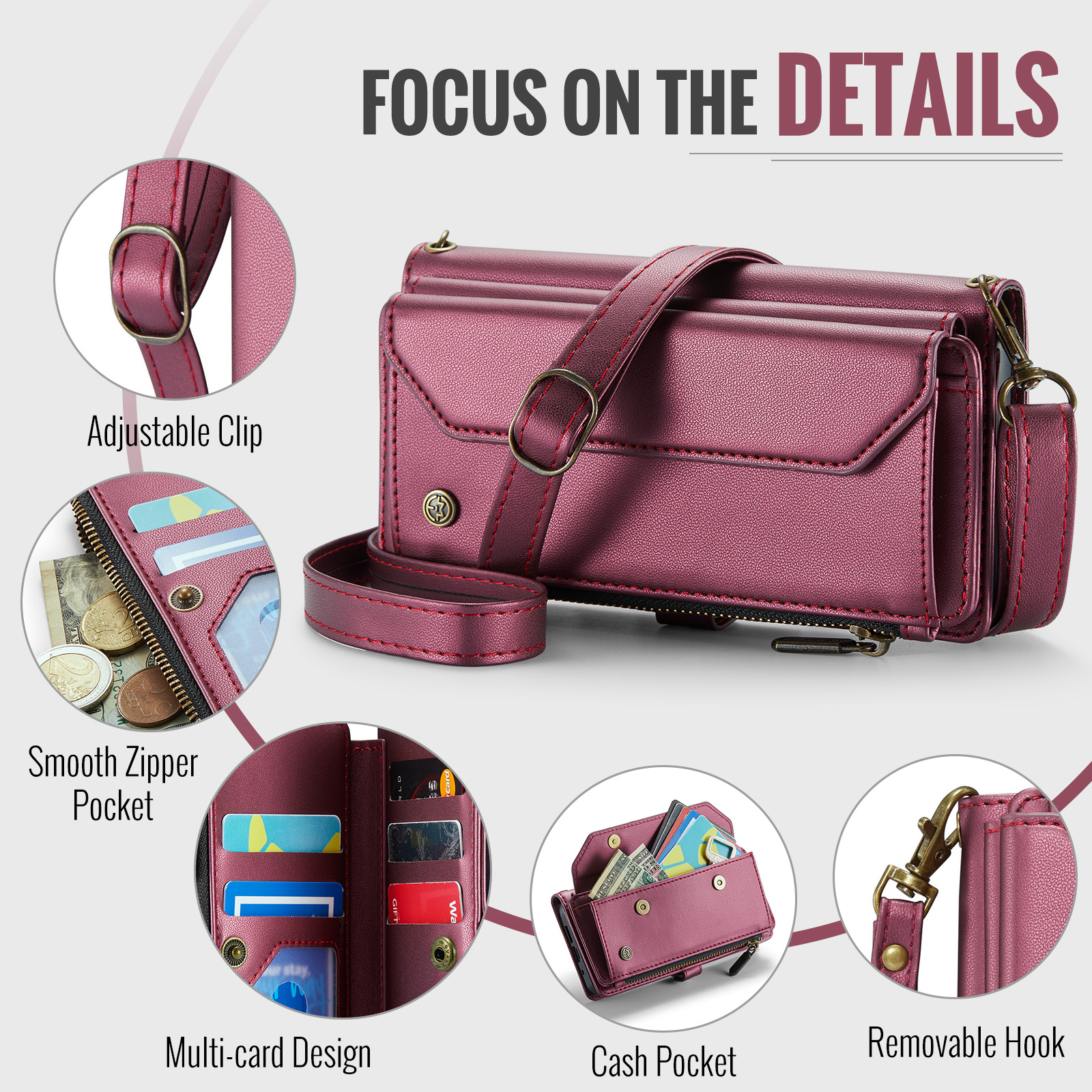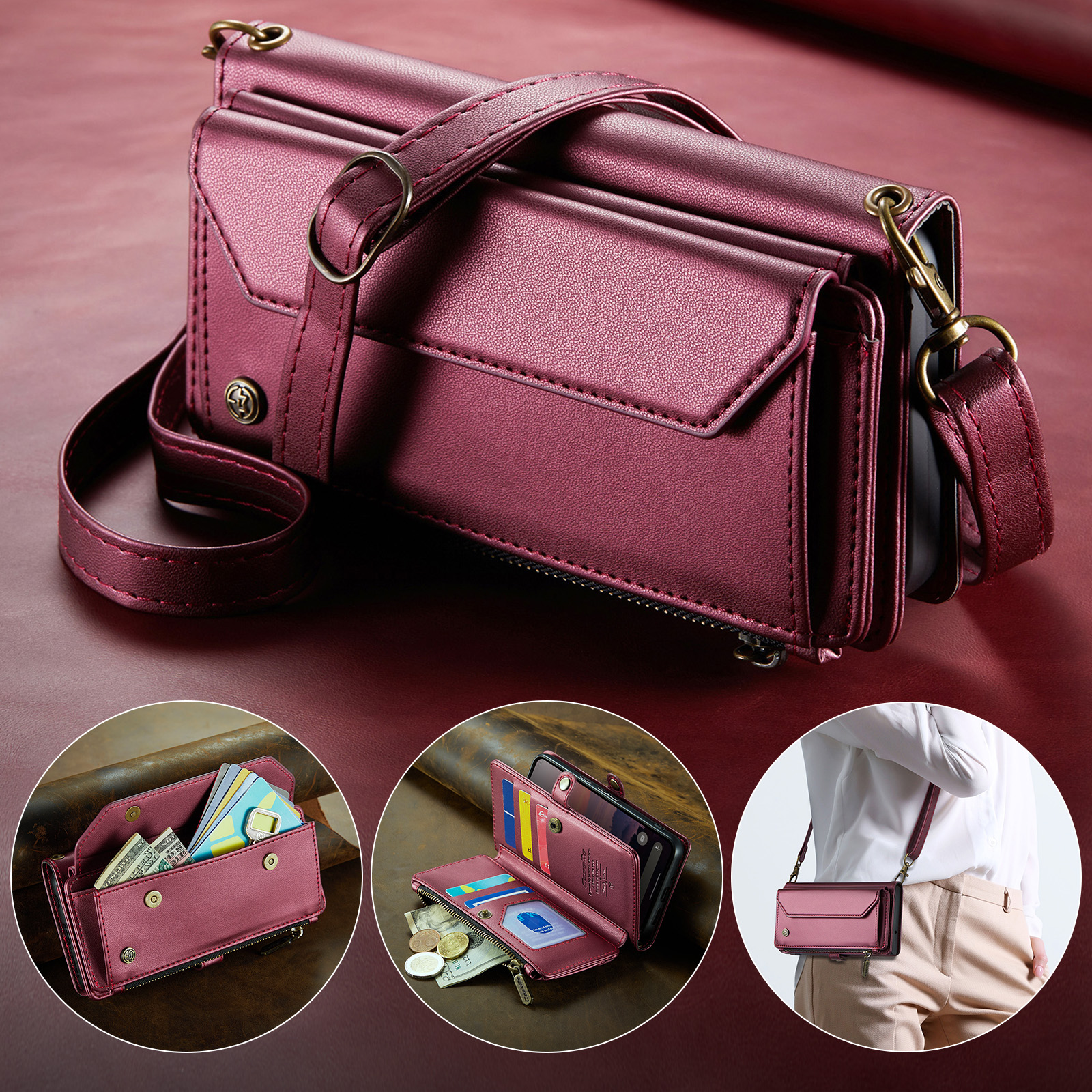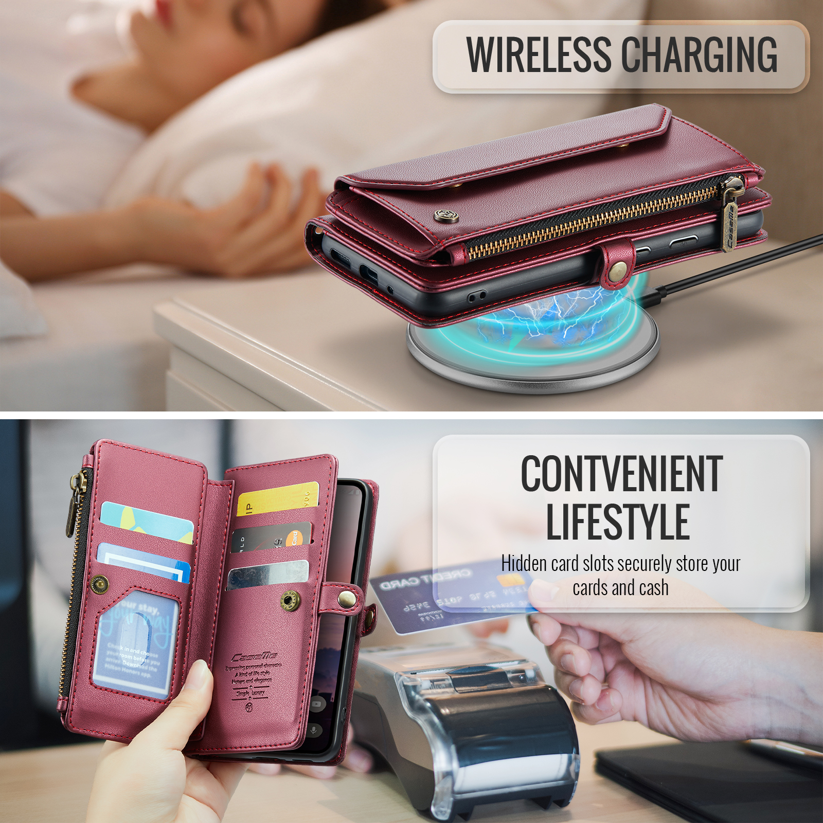 For Google Pixel 10 Pro / 10 / 9 Pro / 9 Leather Case CASEME C36 Zipper 10 Card Slots Phone Cover with Straps – Wine Red
