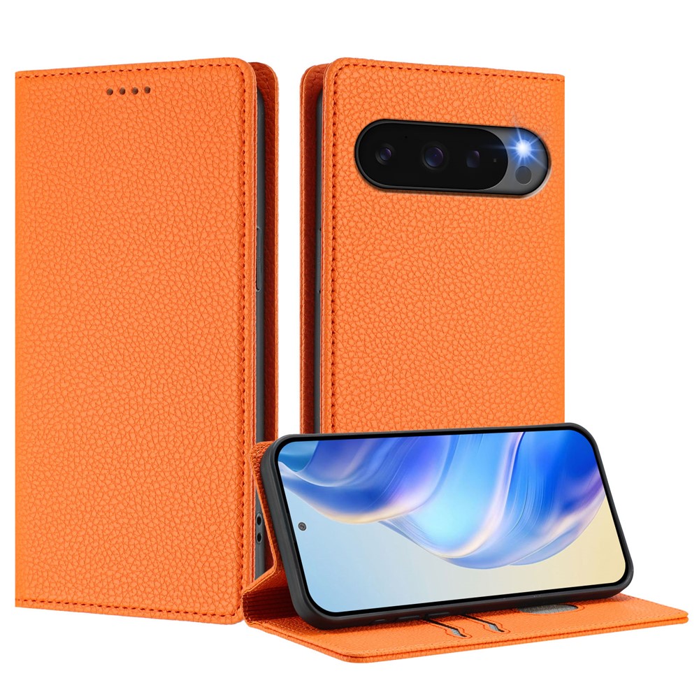 For Google Pixel 10 Pro / 10 / 9 Pro / 9 Wallet Case RFID Blocking Litchi Texture Leather Mobile Cover – Orange