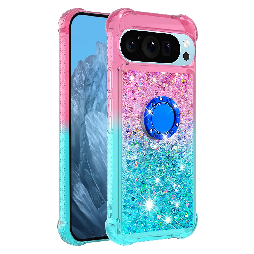 For Google Pixel 10 Pro / 10 TPU Case with Kickstand Gradiant Quicksand Shockproof Cover – Pink+Sky Blue