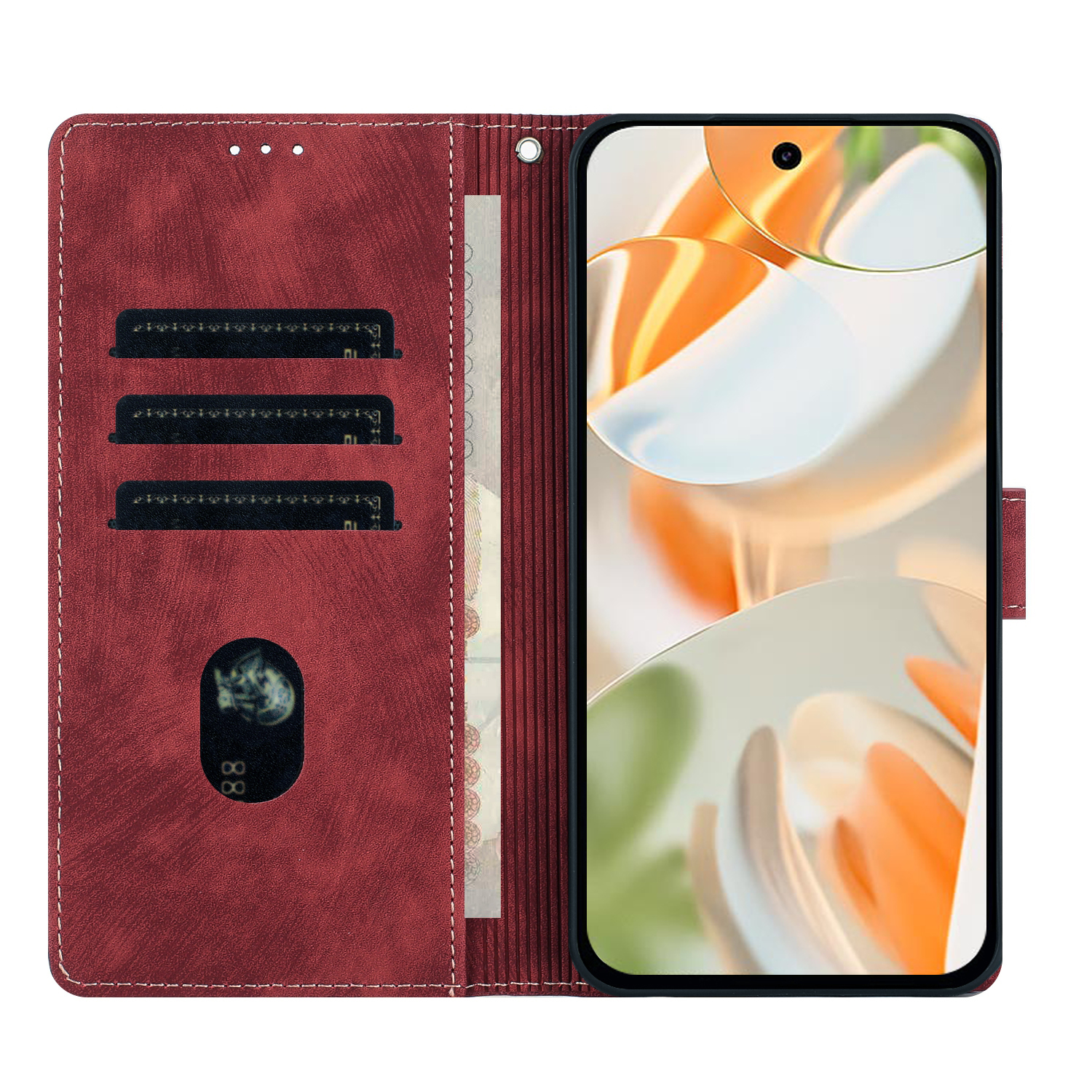 For Google Pixel 10 Pro Case with 2Pcs Tempered Glass WANLONFENG MTL Series Mandala Leather Phone Cover – Red