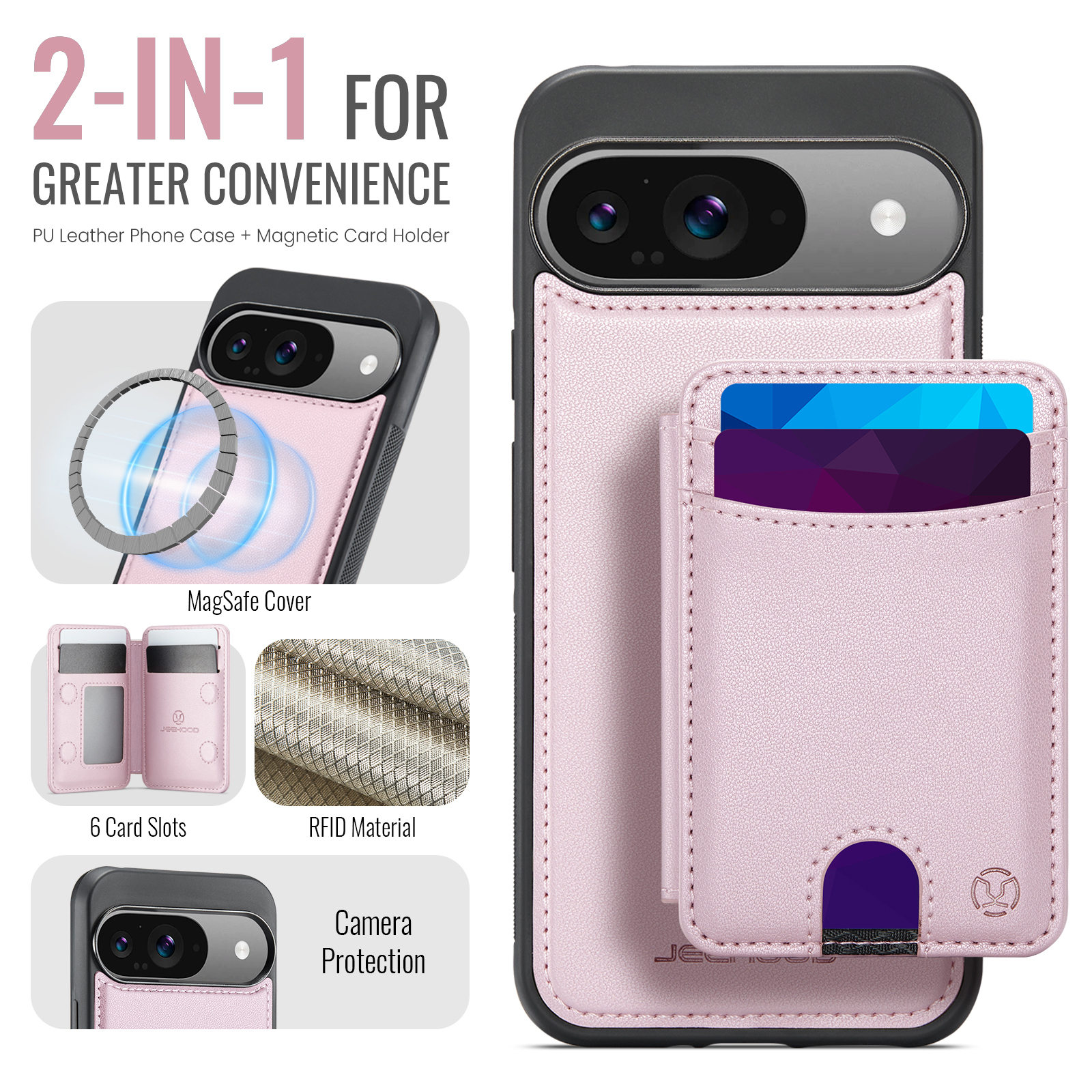 - Multi-Card Design Features 2 card slots on the front, and 4 additional card slots (1 photo slot + 3 card slots) inside for maximum organization.