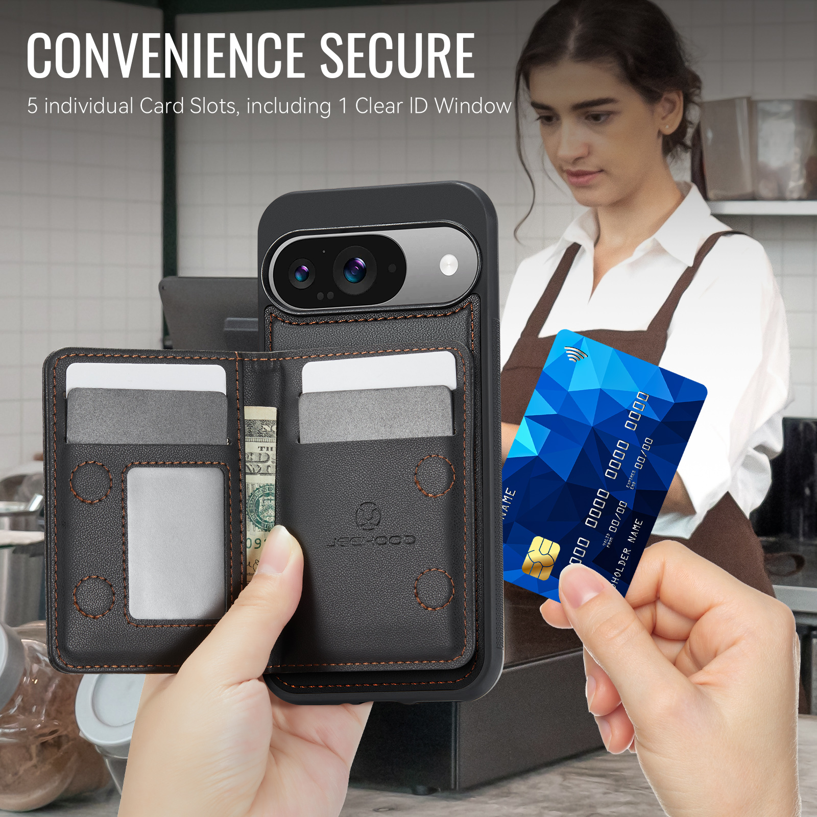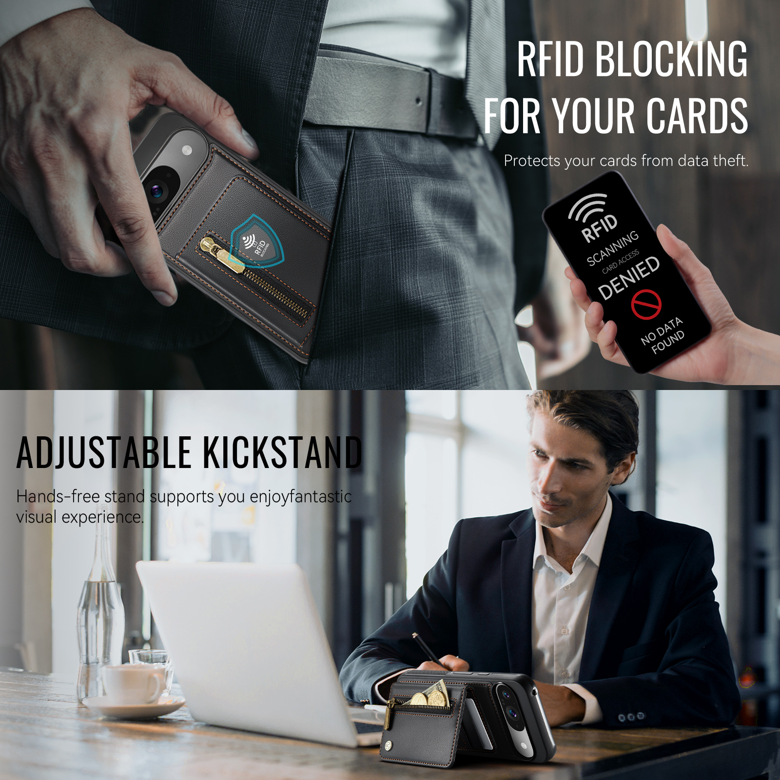 - RFID Blocking Integrated RFID blocking technology in card slots prevents unauthorized scanning and protects your personal information.
