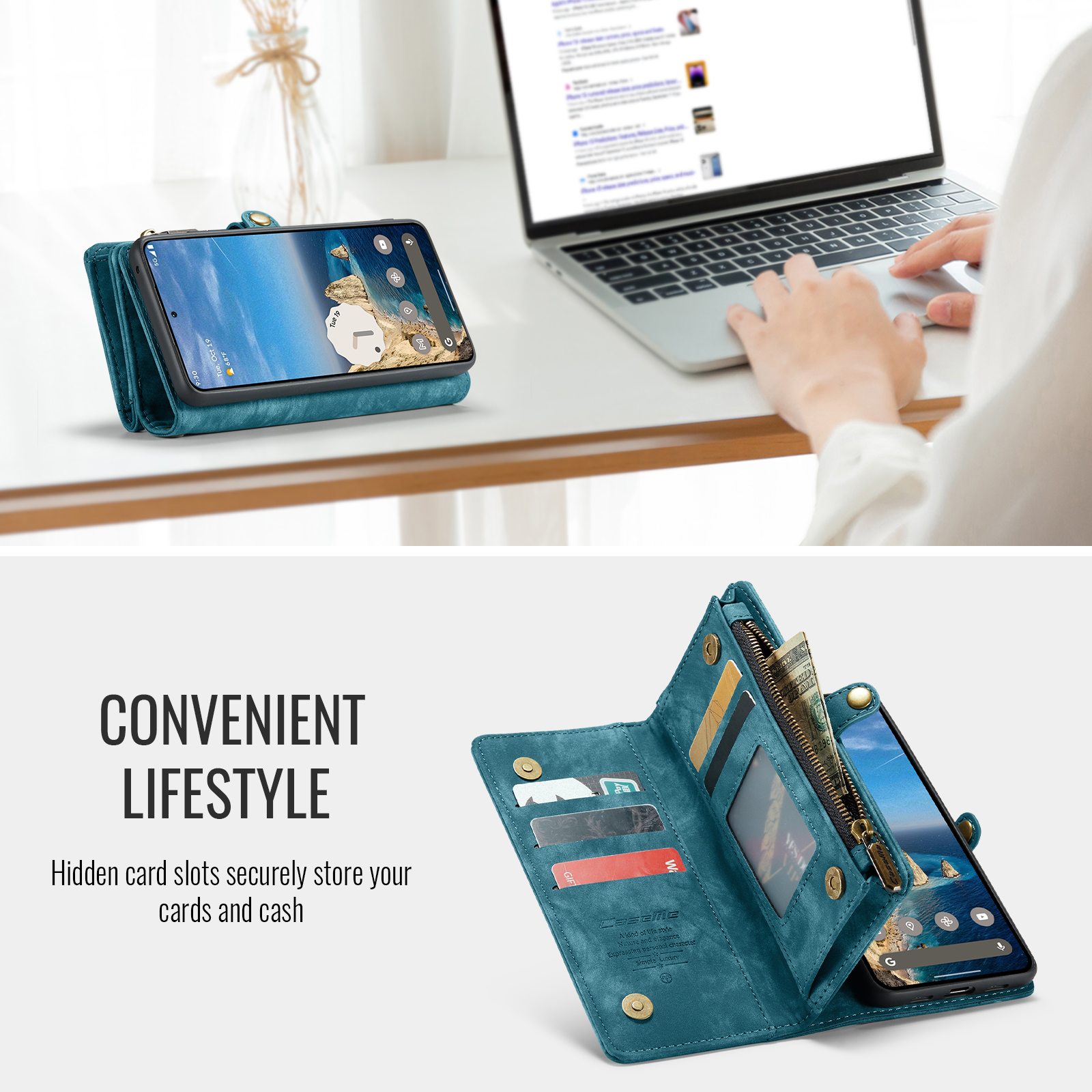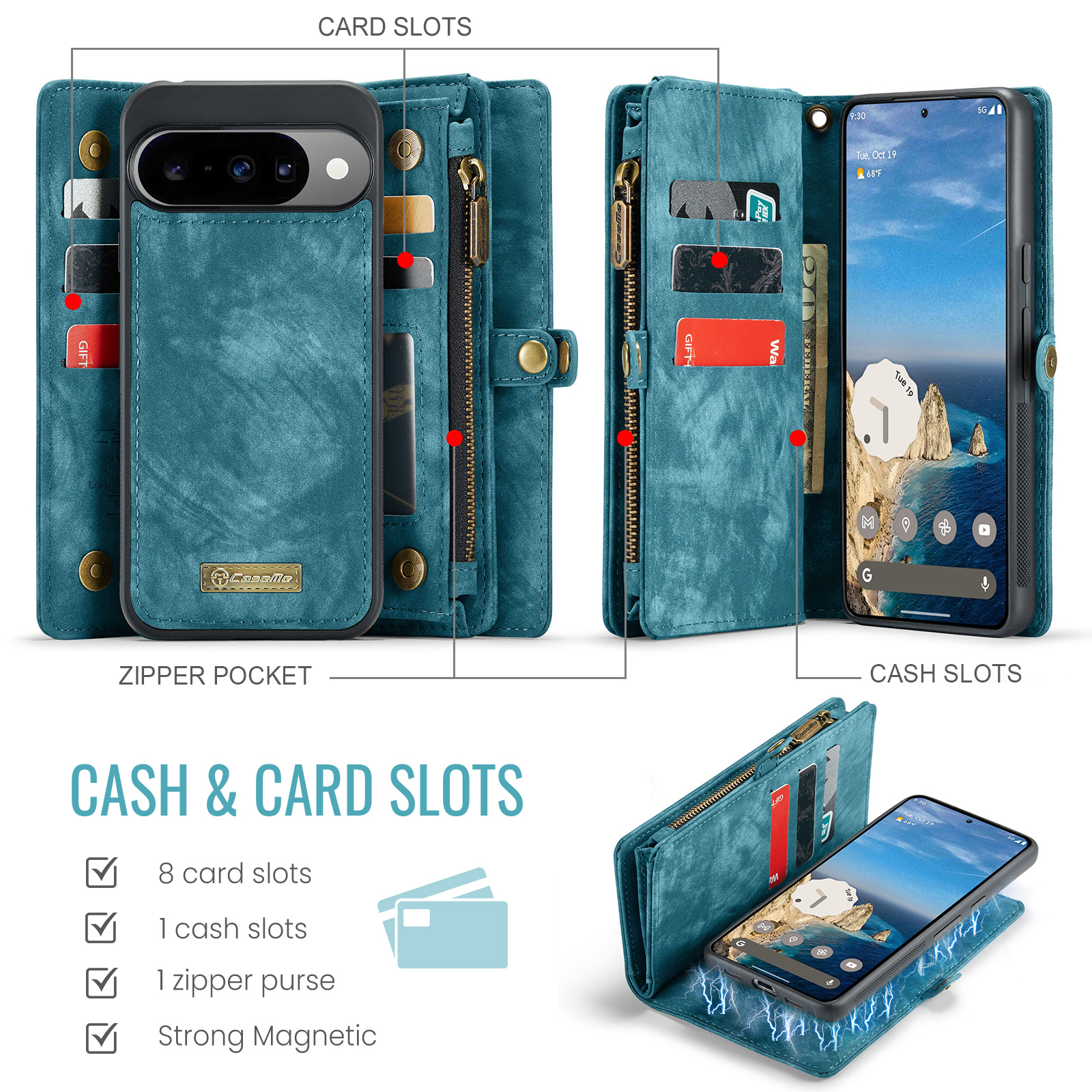 - Cash and Card Slots Zipper Pocket With 8 card slots, 1 cash slot, and 1 zipper purse for extra storage space without taking extra wallet when you go out