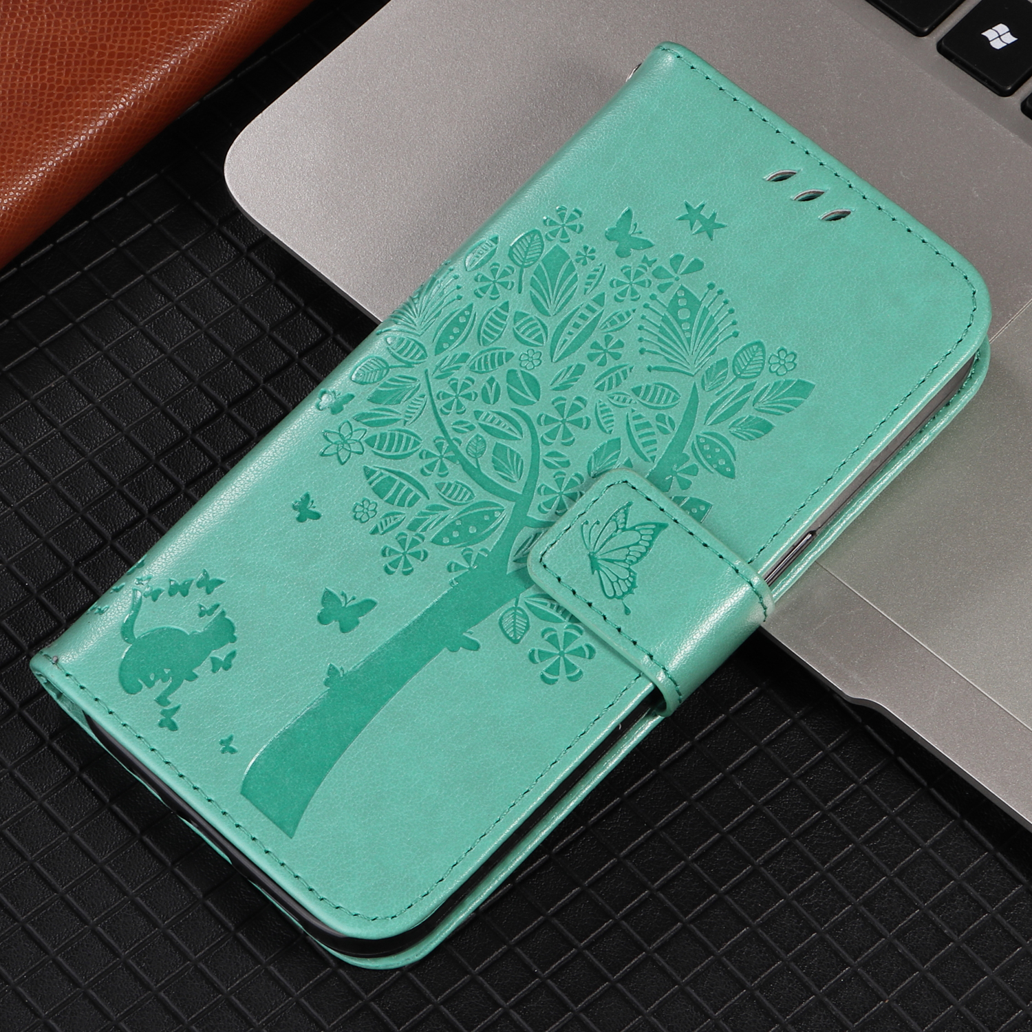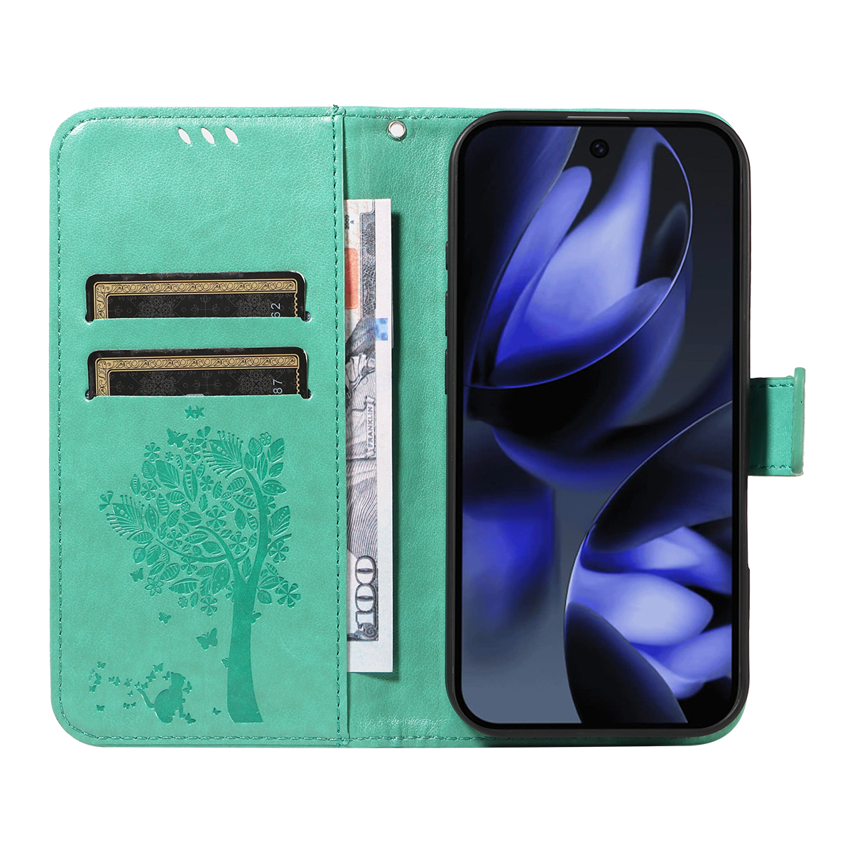 - Elegant Pattern Imprinted Features a stunning cat and tree pattern imprinted design on the front cover and the inner card slots area, adding a touch of luxury and uniqueness