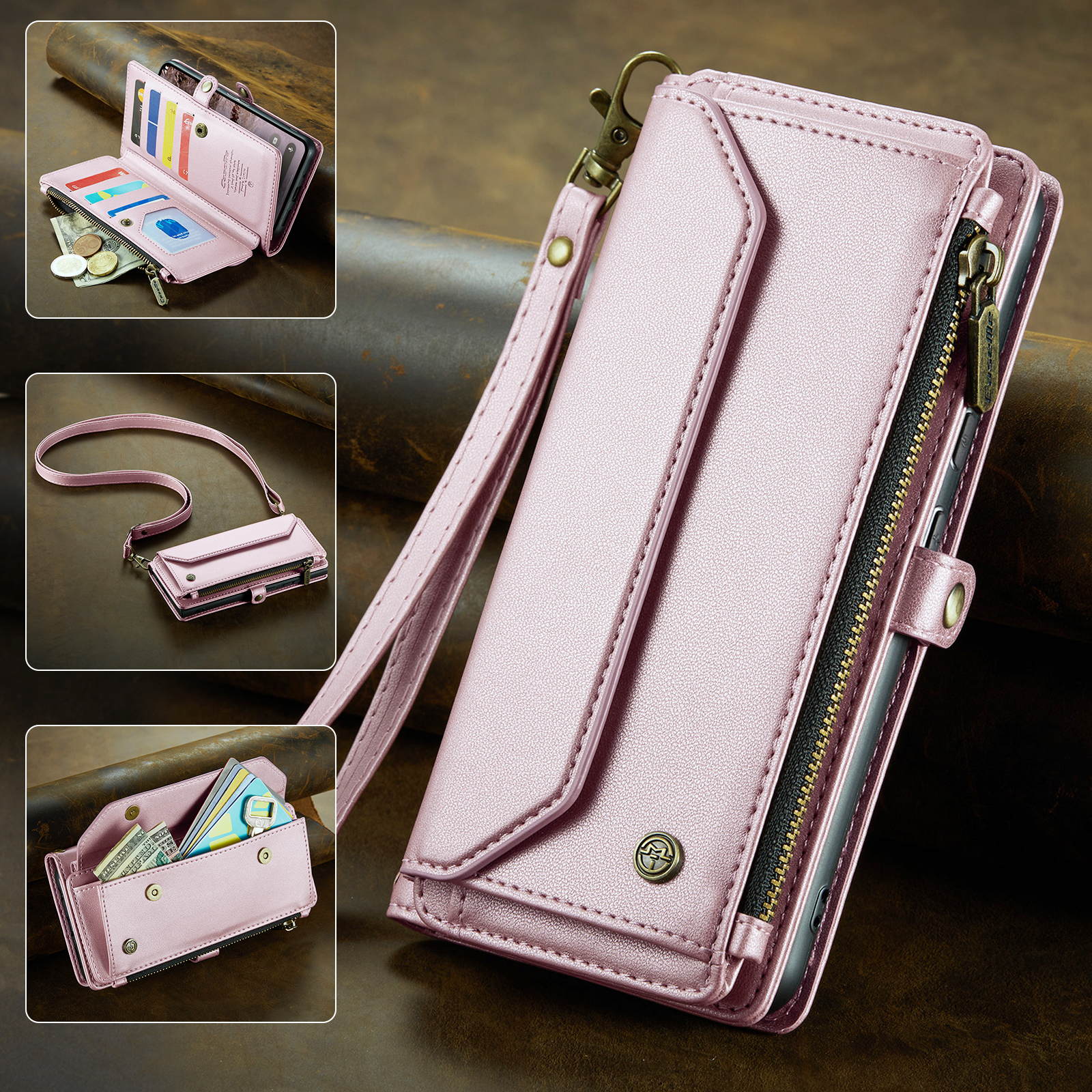 For Google Pixel 10 Pro XL Leather Case CASEME C36 Zipper 10 Card Slots Phone Cover with Straps - Pink $25.61