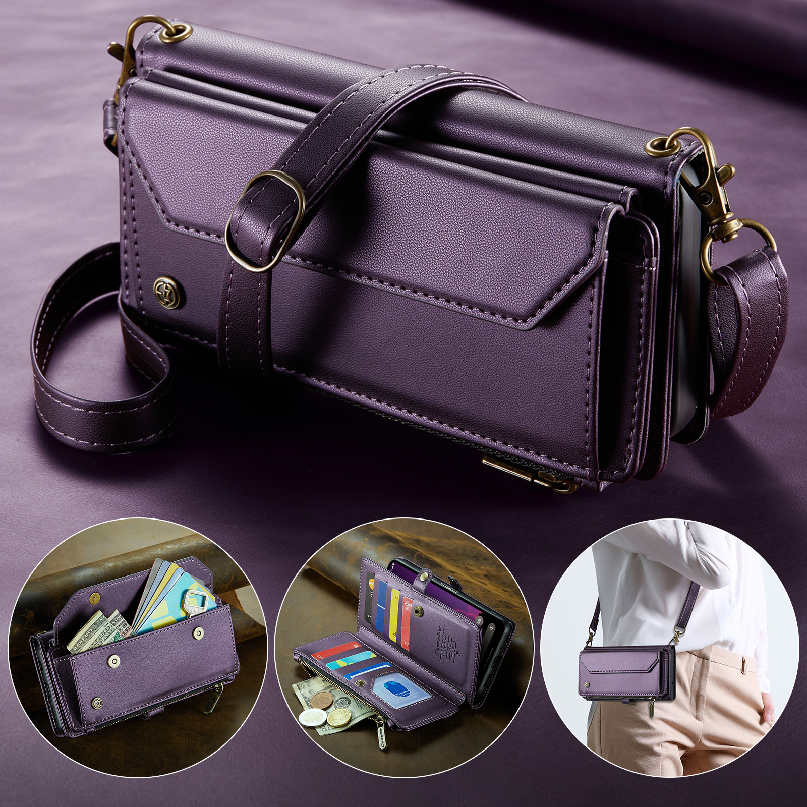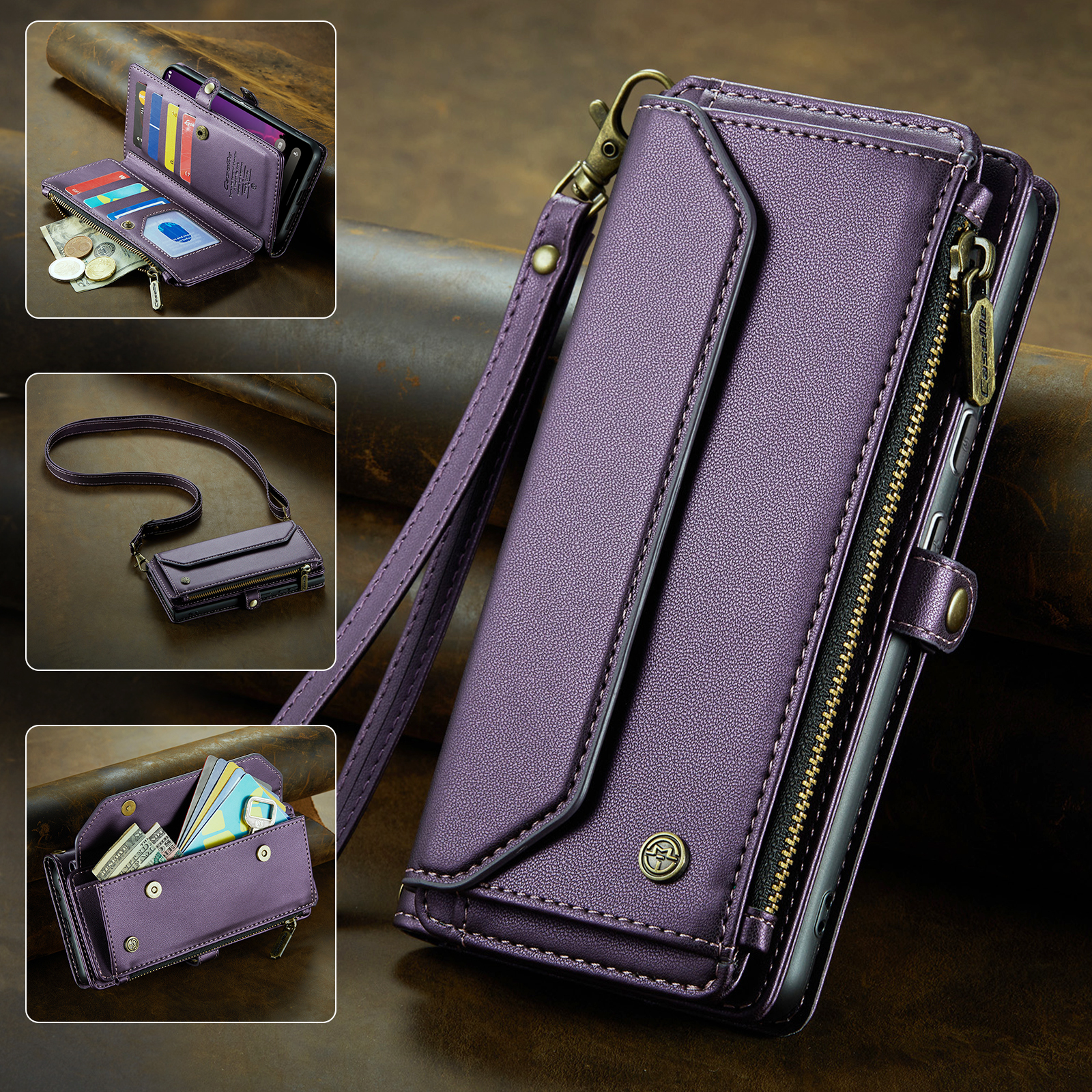 For Google Pixel 10 Pro XL Leather Case CASEME C36 Zipper 10 Card Slots Phone Cover with Straps - Purple $25.61