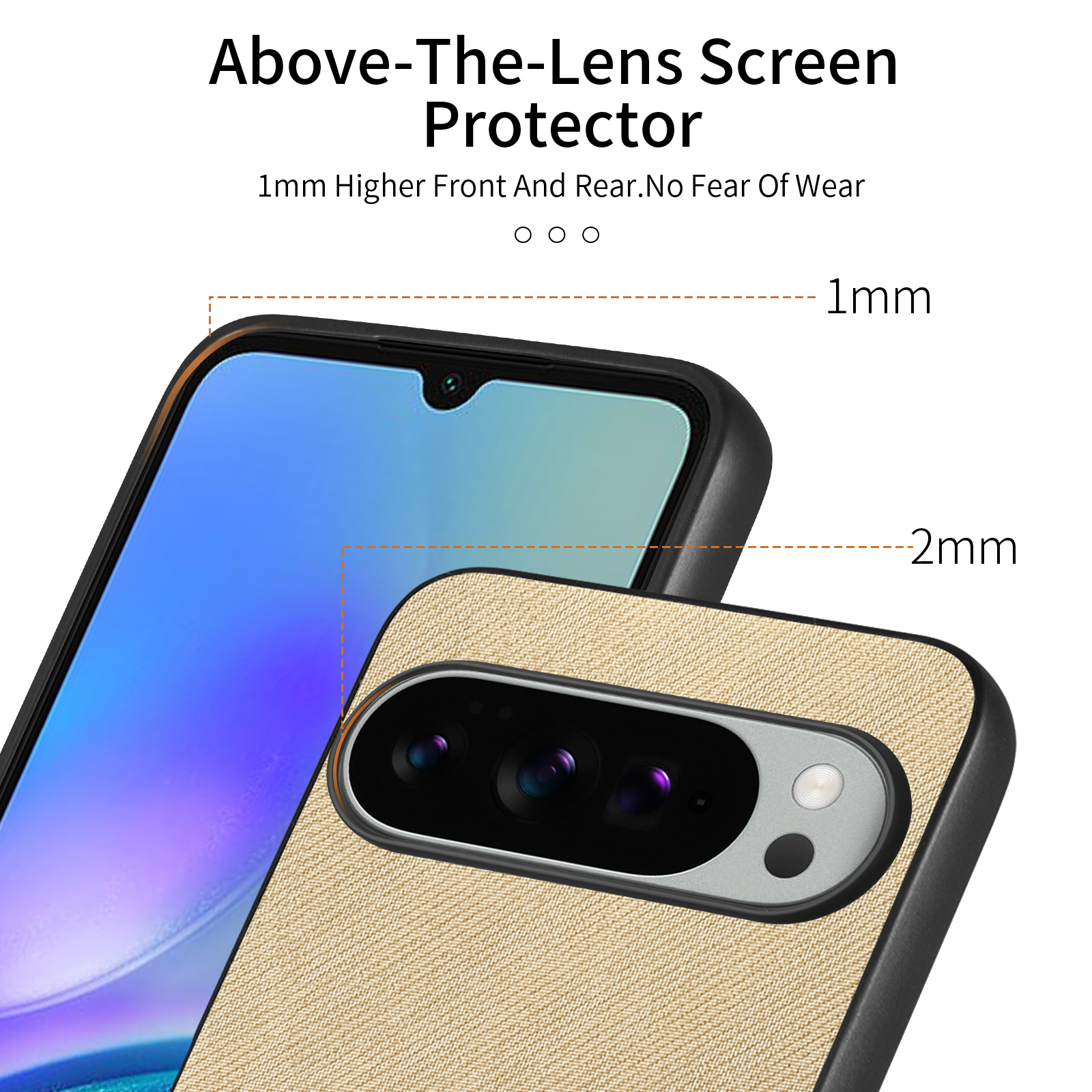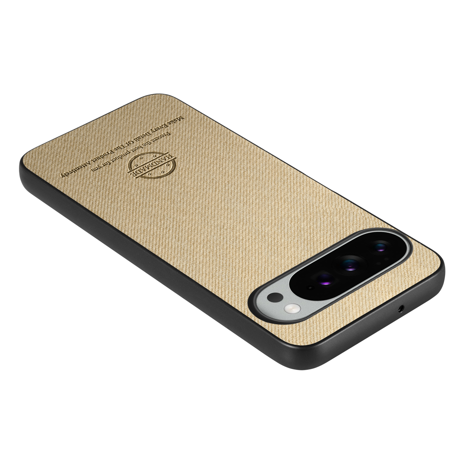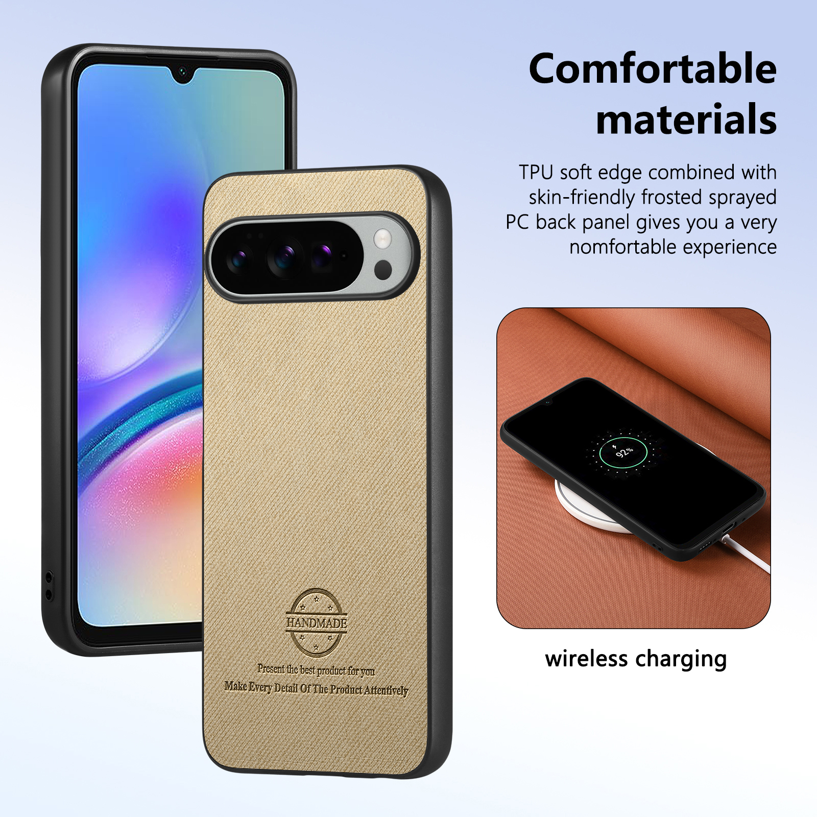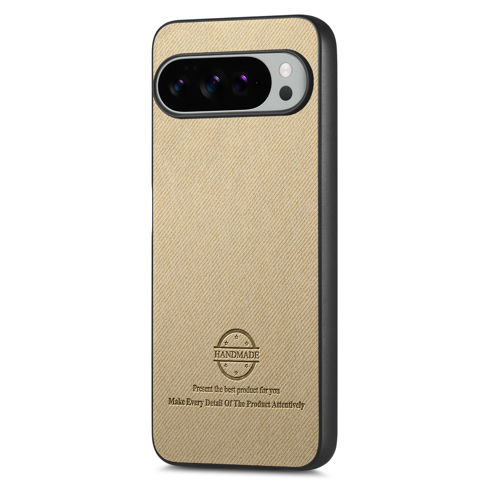 For Google Pixel 10 Pro XL Leather Phone  Back Cover with Cloth Texture - Khaki