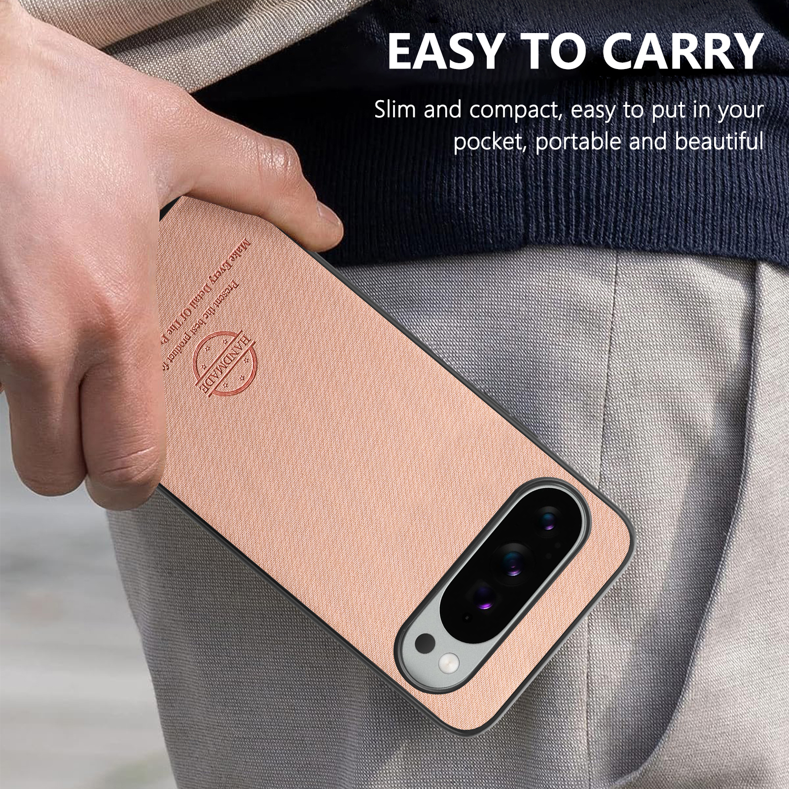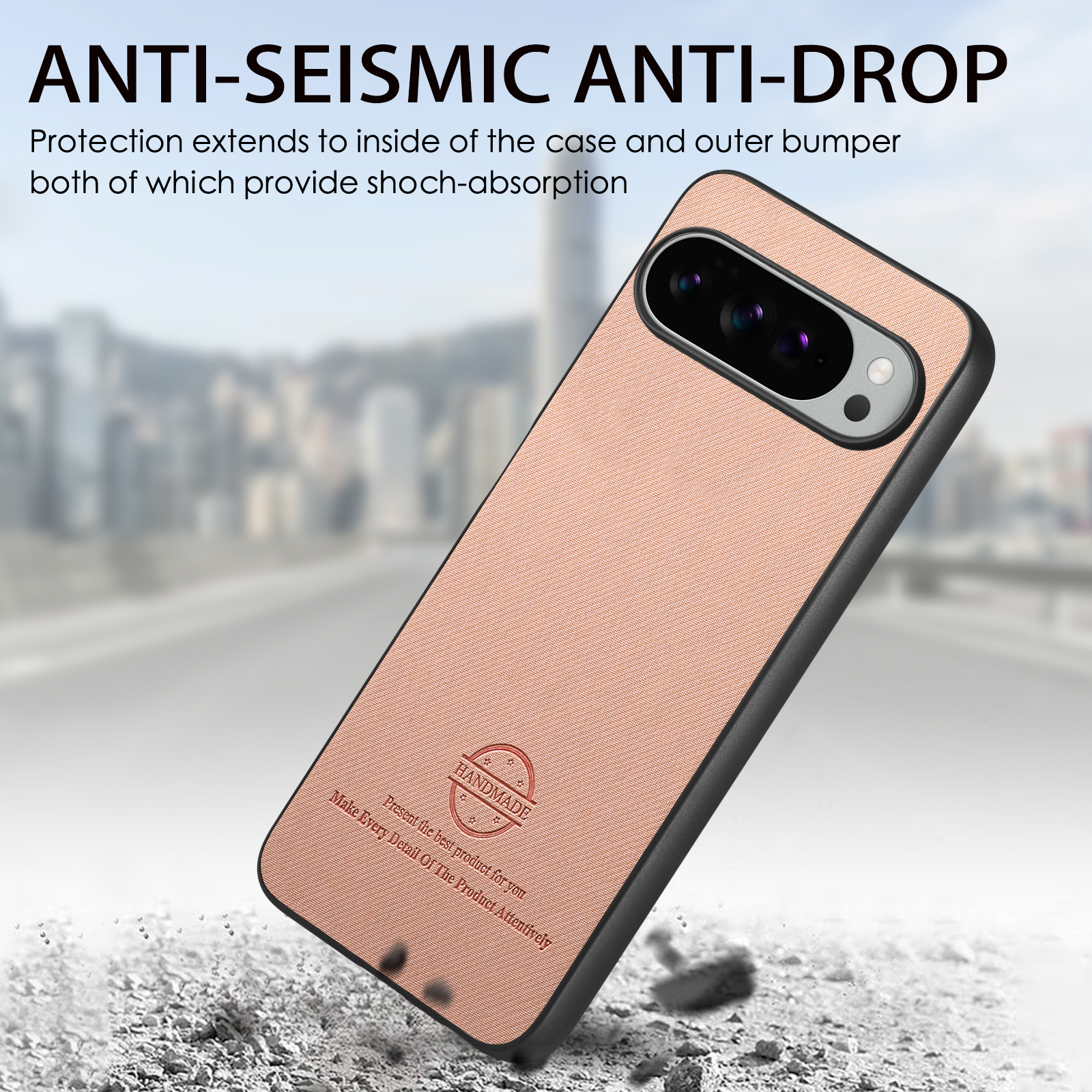 • For Google Pixel 10 Pro XL Leather Phone  Back Cover with Cloth Texture - Khaki