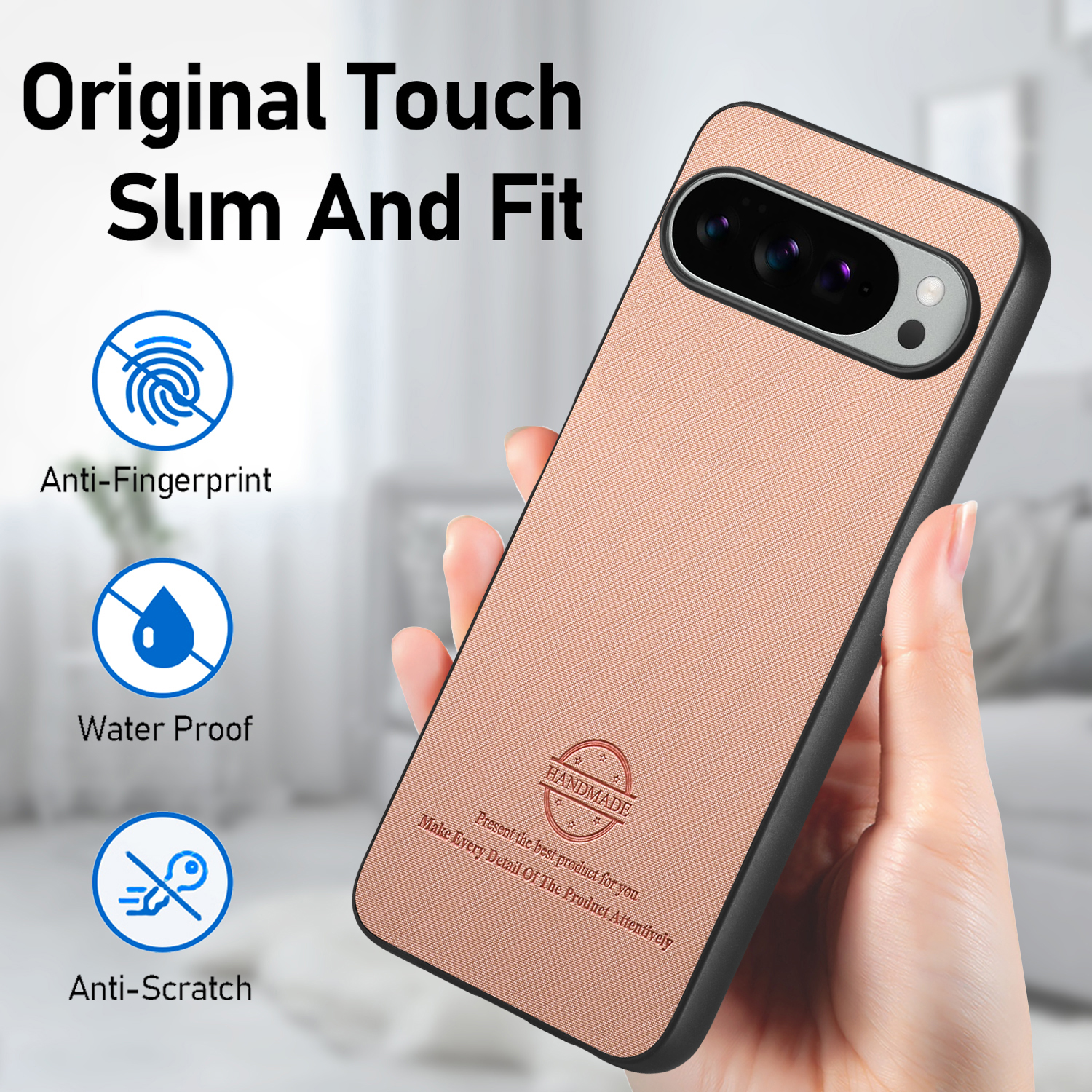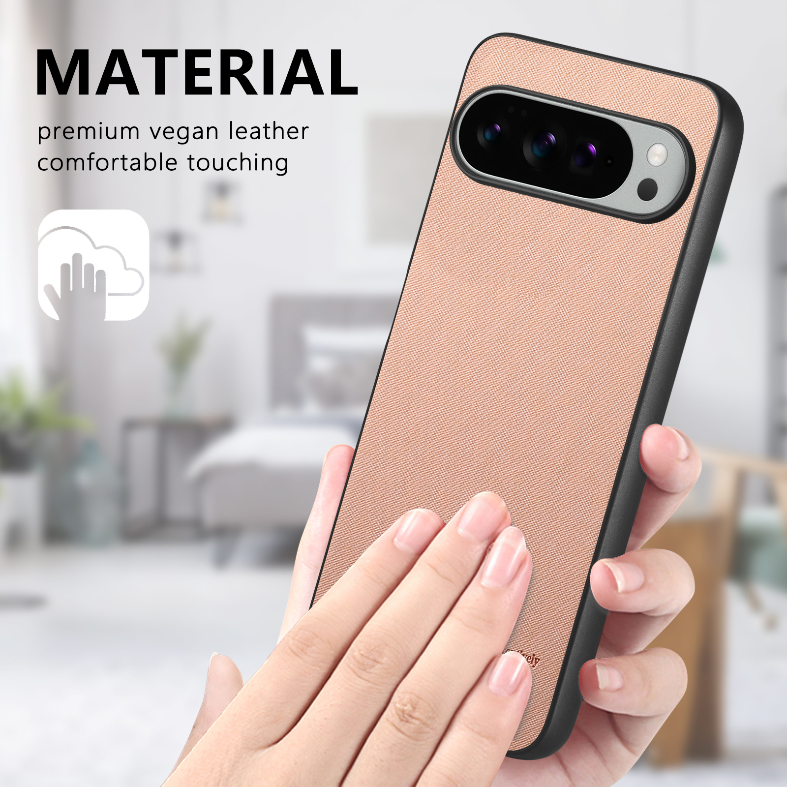 • For Google Pixel 10 Pro XL Leather Phone  Back Cover with Cloth Texture - Black