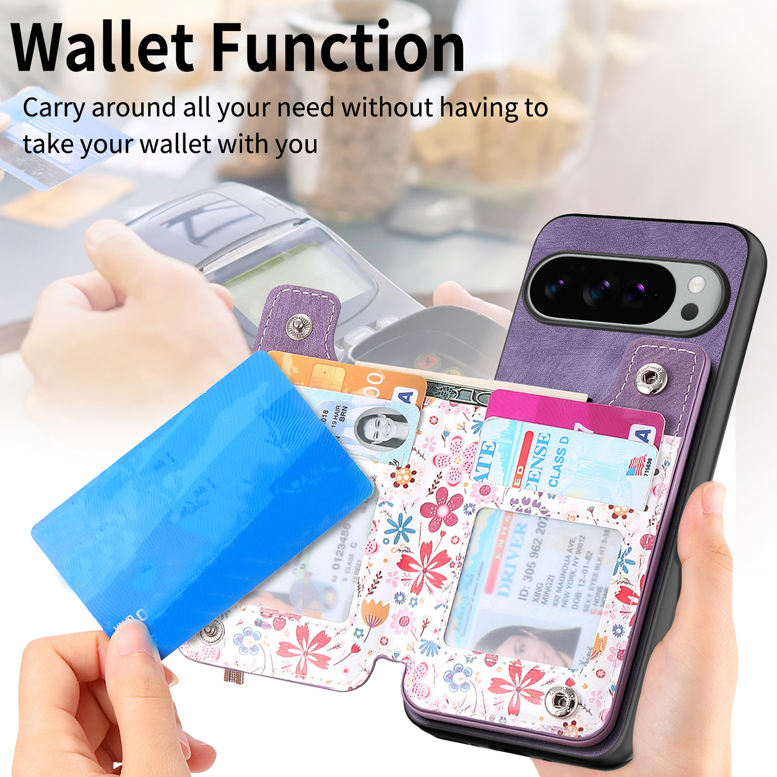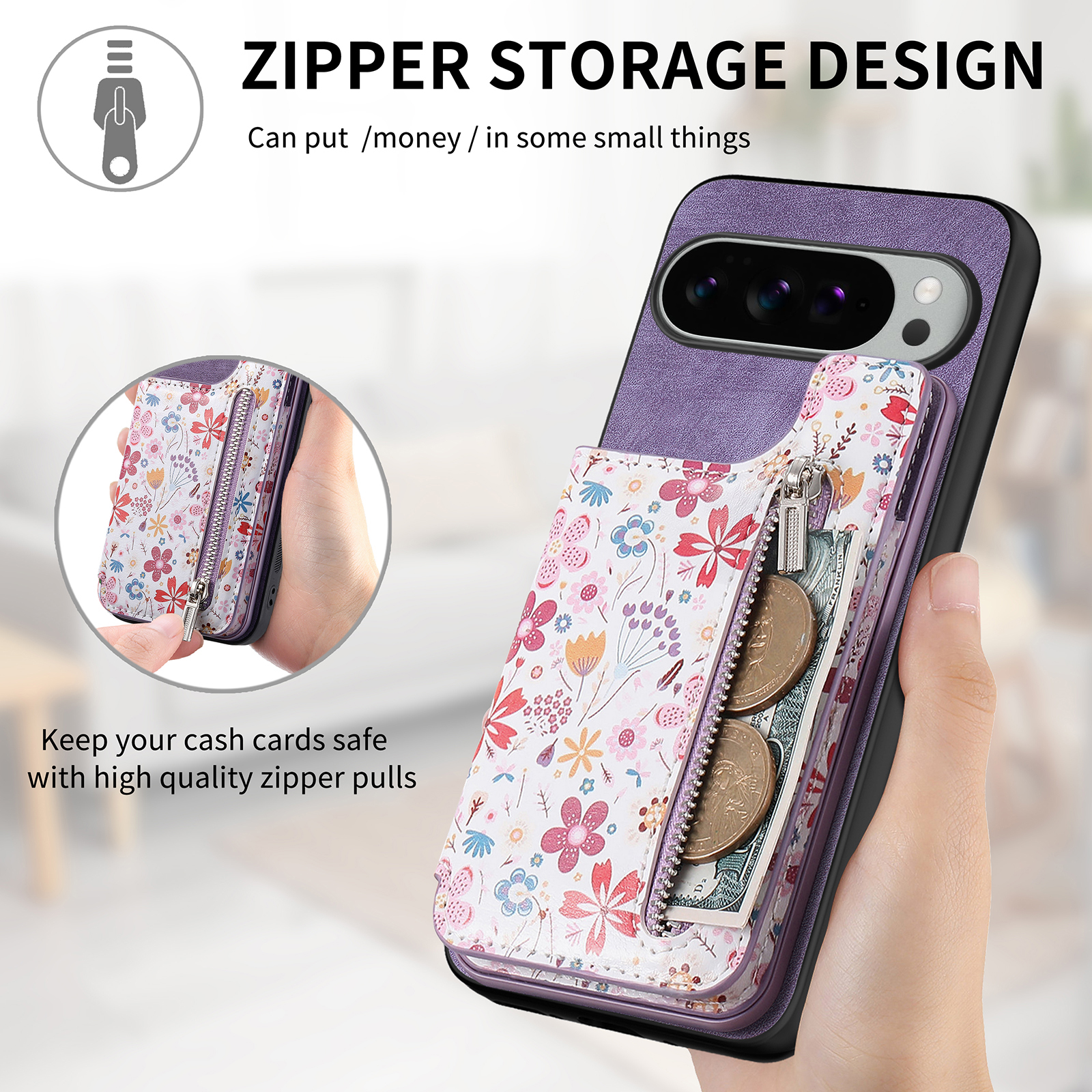 - Zipper Card Holder Design The case includes a built-in cardholder with a secure zipper pocket, allowing you to carry essential cards and cash while keeping them safely stored