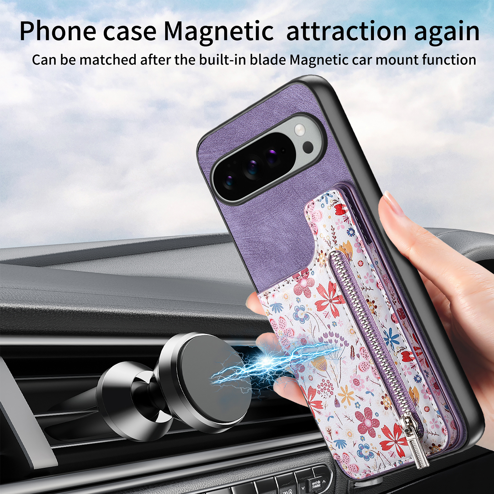 - Magnetic Car Mount Compatibility The built-in metal sheet allows the case to attach to magnetic car phone holders, providing a hands-free, secure fit while driving (holder not included)