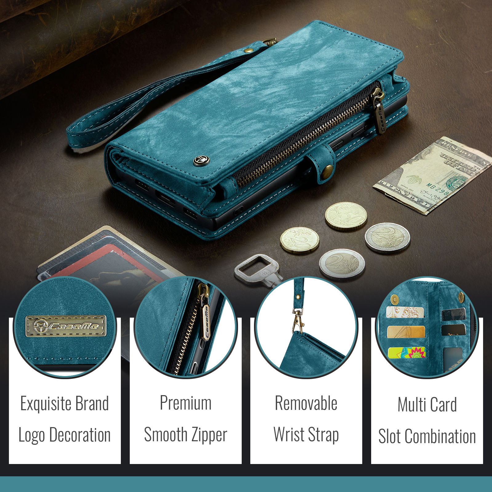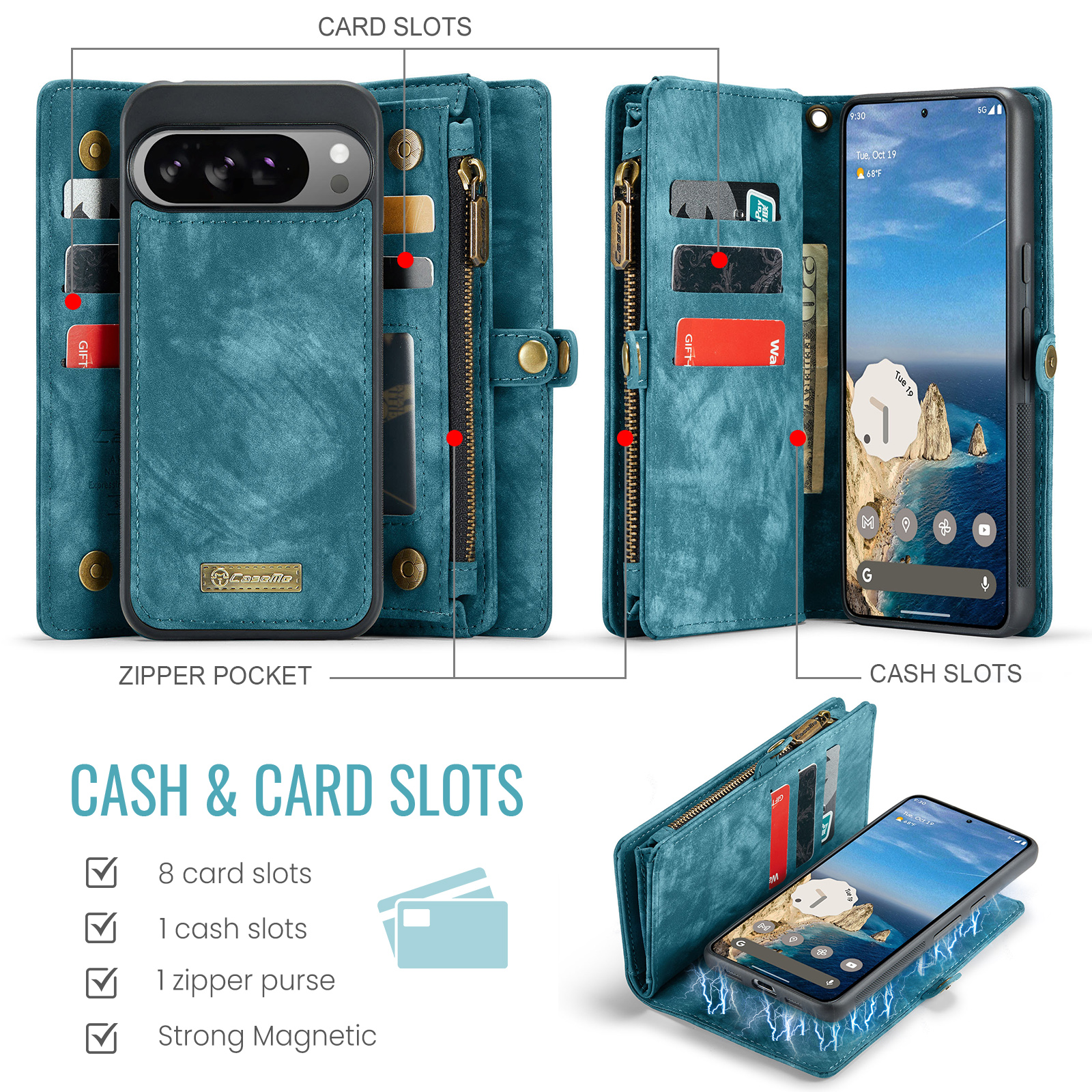- Cash and Card Slots Zipper Pocket With 8 card slots, 1 cash slot, and 1 zipper purse for extra storage space without taking extra wallet when you go out