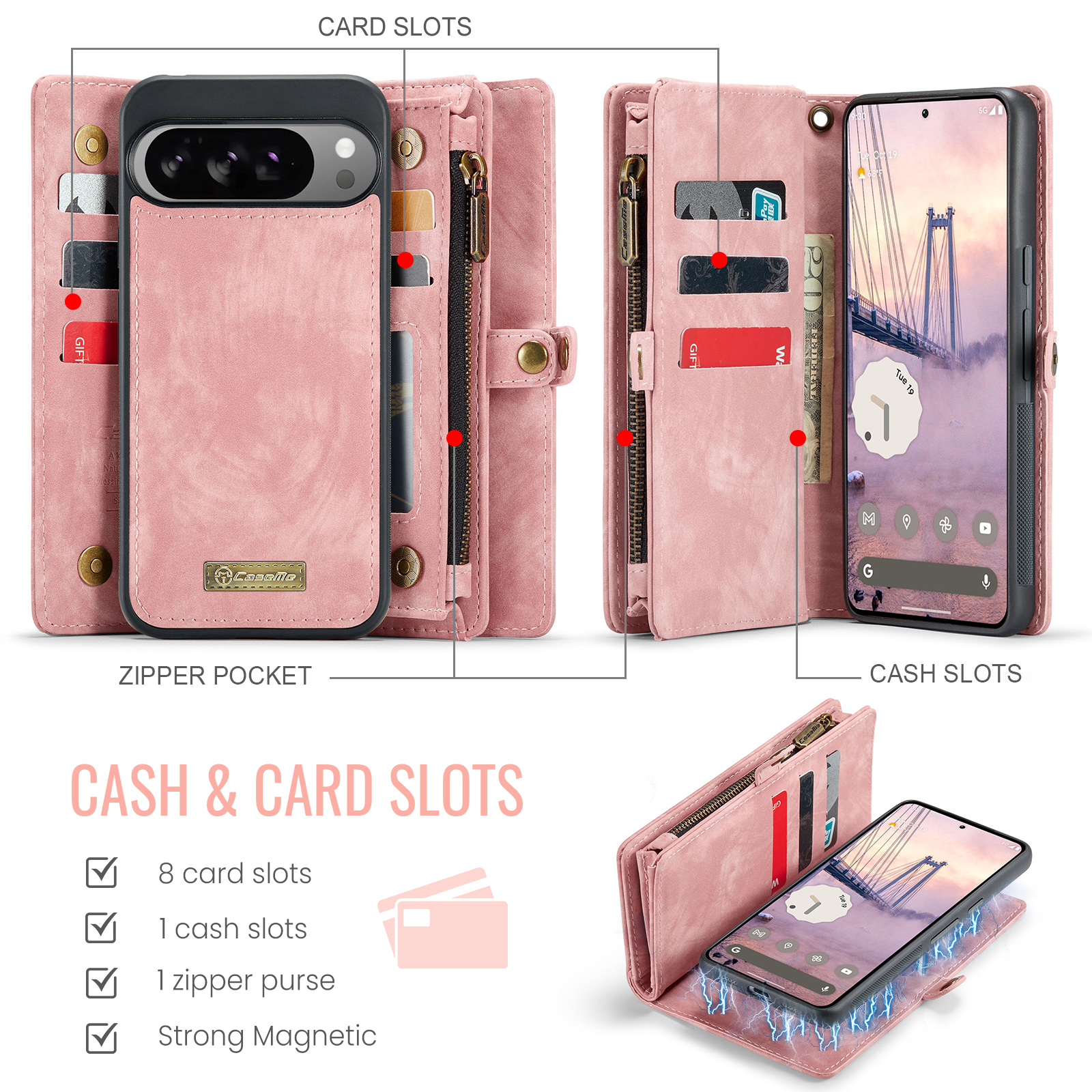 - Cash and Card Slots Zipper Pocket With 8 card slots, 1 cash slot, and 1 zipper purse for extra storage space without taking extra wallet when you go out
