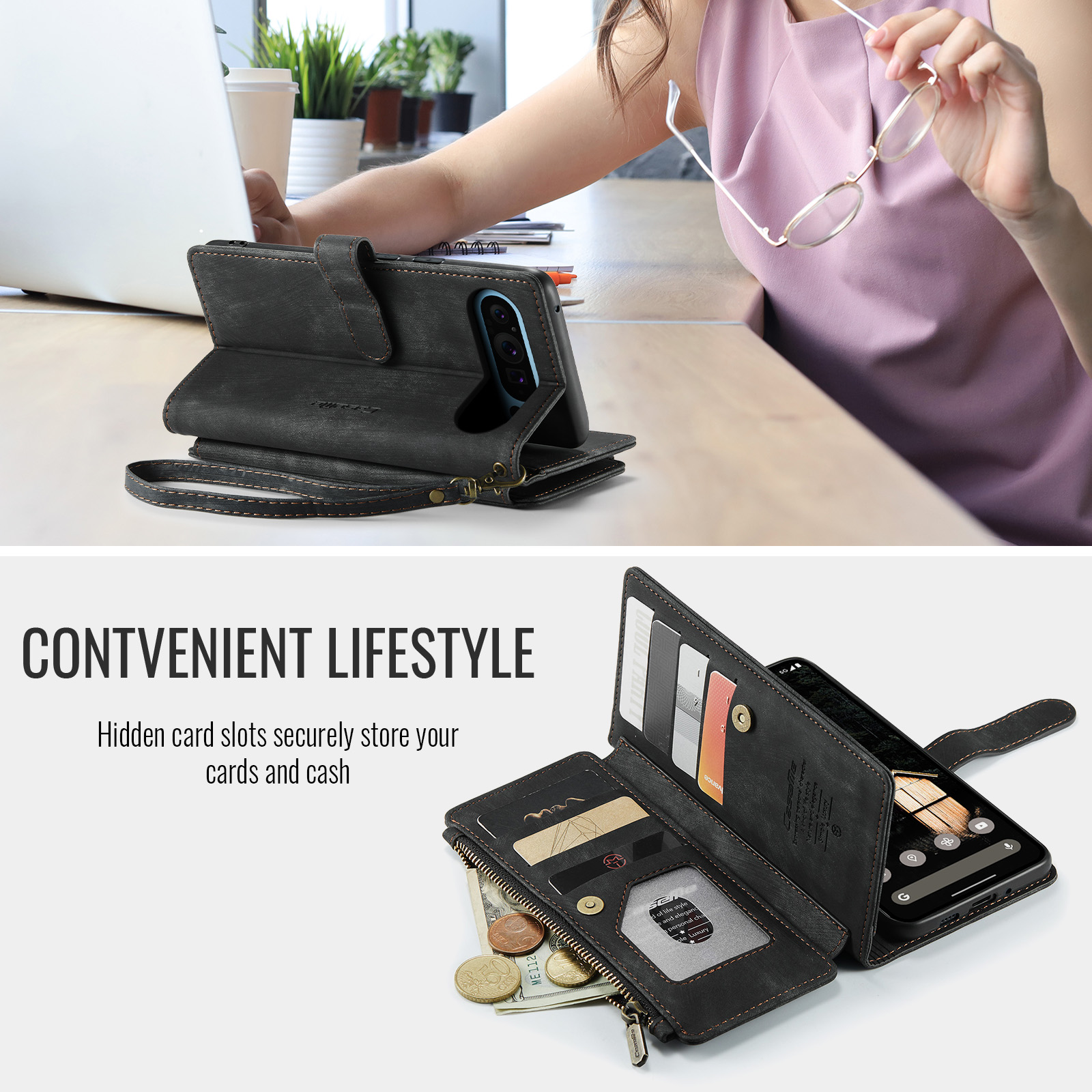 - Cash & Card Slots Features multiple card slots, 1 cash slot, and 1 zipper purse. Conveniently store your essentials while ensuring easy access