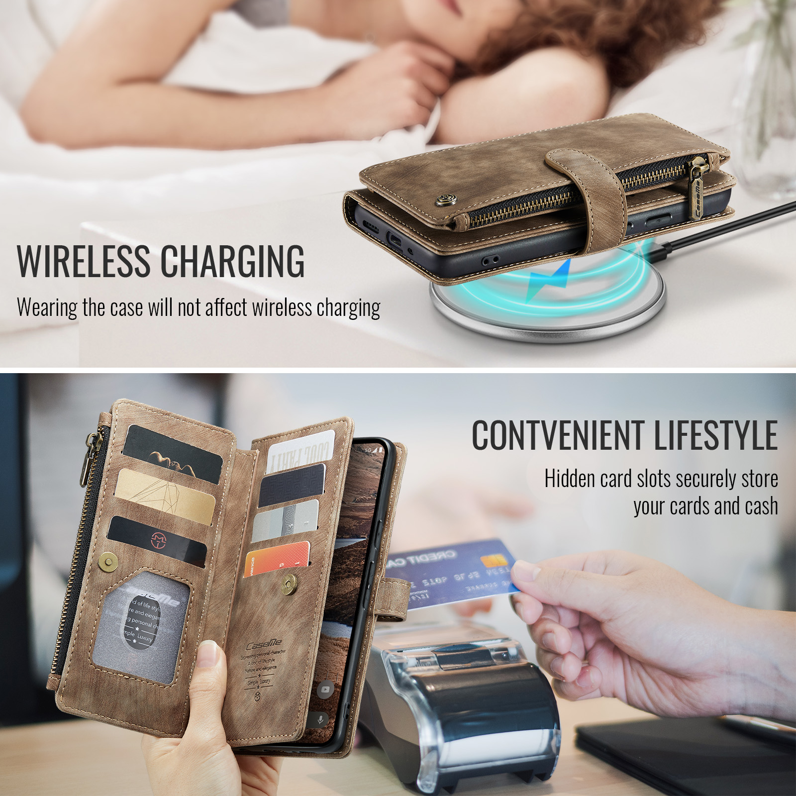 - Large Zipper Space Smoother, softer, and bigger space with the unique zipper design. Ideal for bills, cash, coins, and credit cards. The zipper won’t scratch the phone screen