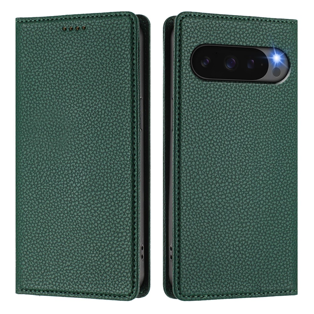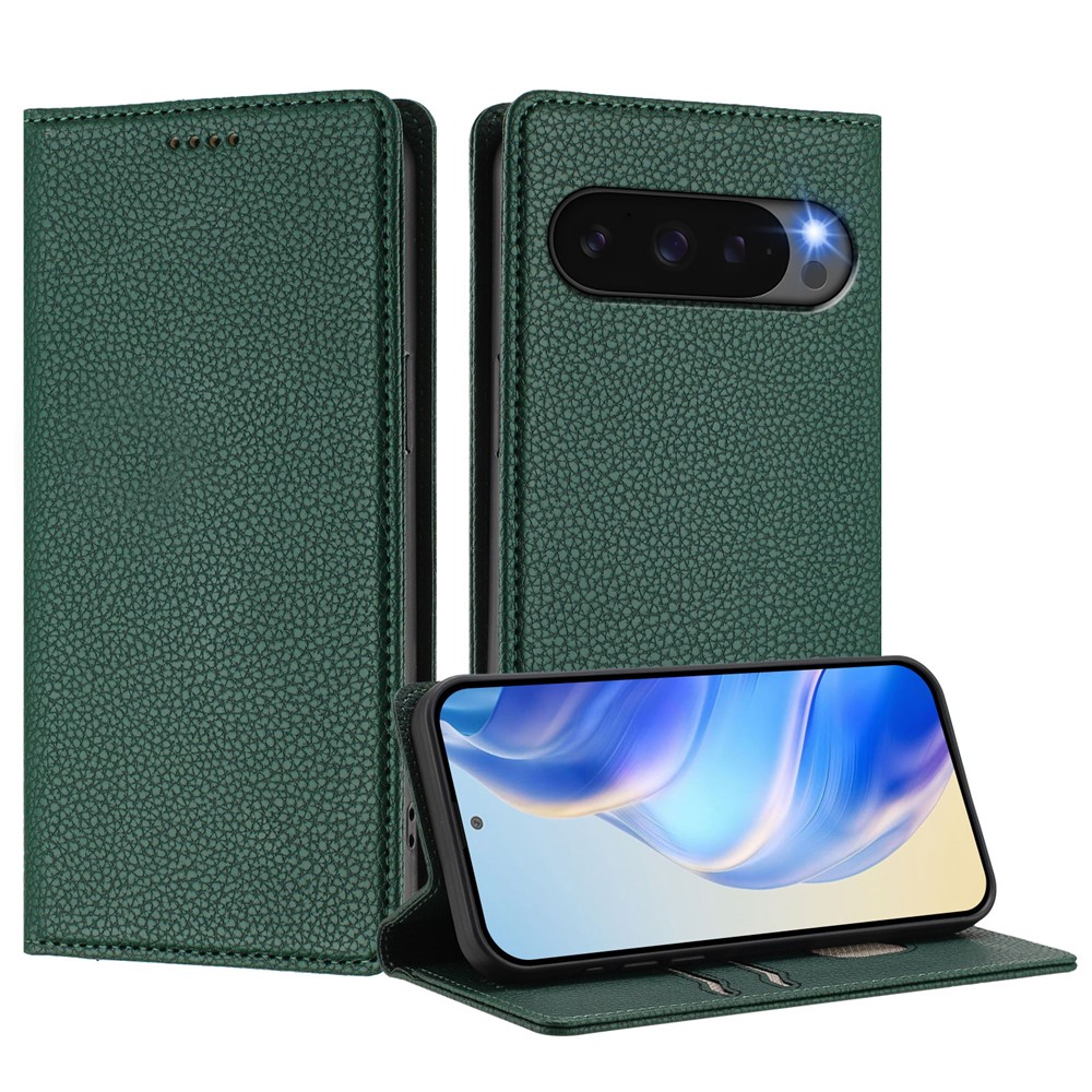 For Google Pixel 10 Pro XL Wallet Case RFID Blocking Litchi Texture Leather Mobile Cover – Dark Green