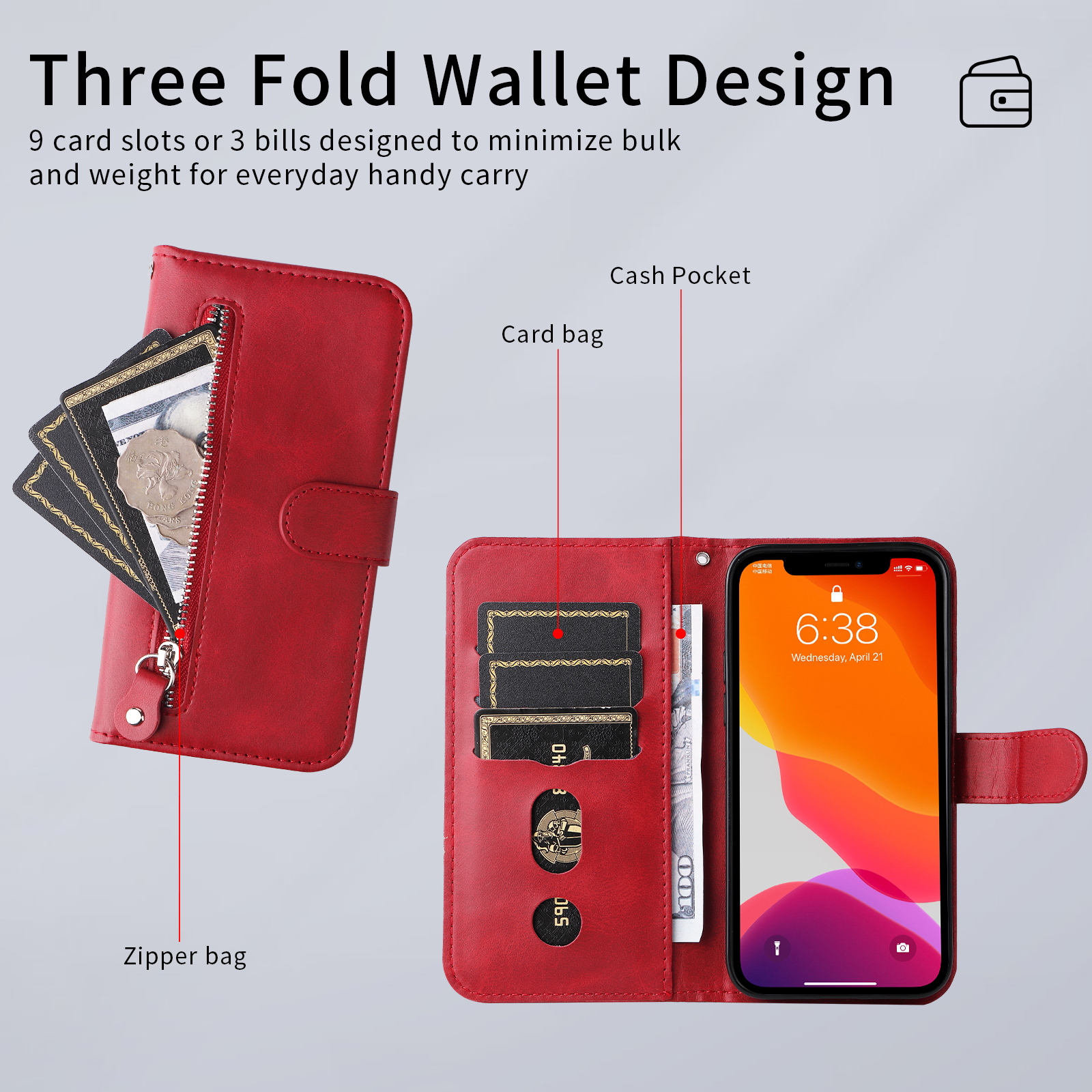- Innovative Wallet Design Includes multiple card slots and a cash slot integrated into the case, allowing you to carry essential cards and a small amount of cash conveniently