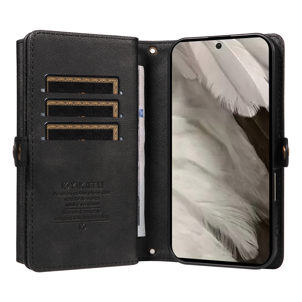 For Google Pixel 8 Case YIKATU YK-008 Zipper Wallet Leather Phone Cover with Shoulder Strap – Black