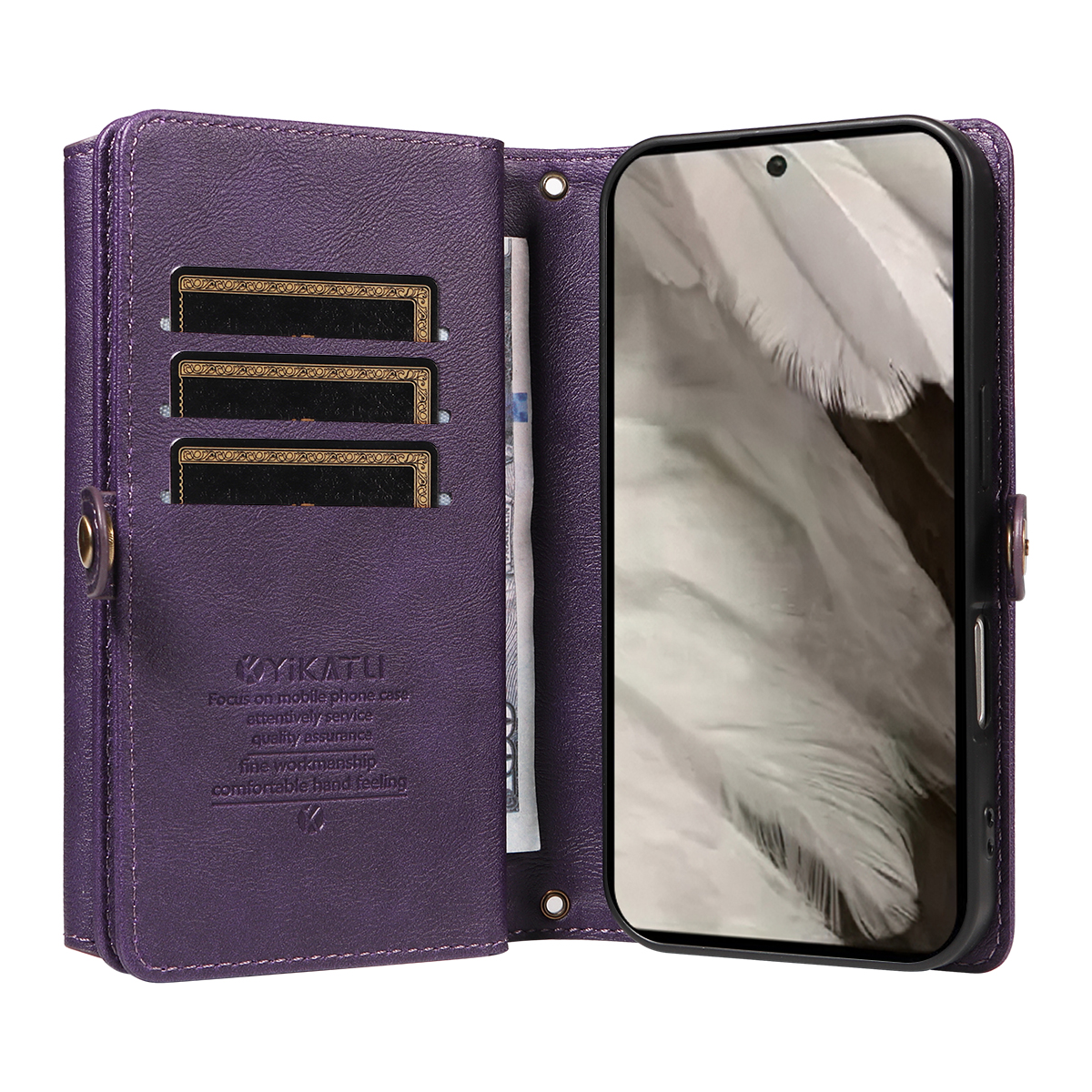For Google Pixel 8 Case YIKATU YK-008 Zipper Wallet Leather Phone Cover with Shoulder Strap - Purple $27.98