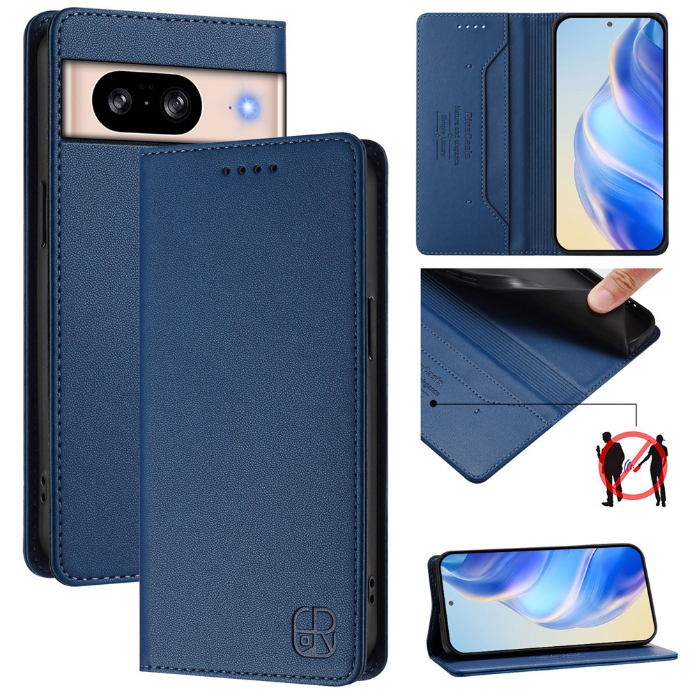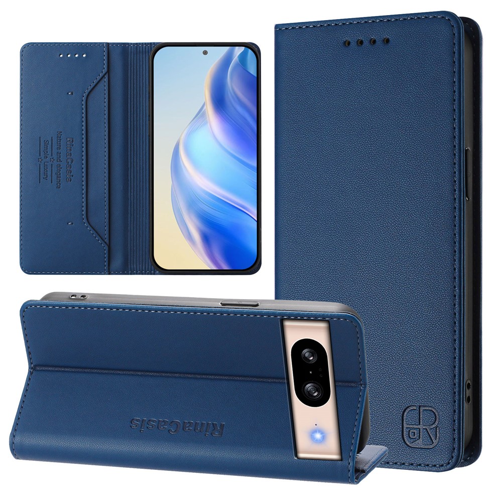 For Google Pixel 8 Leather Case RINACASIS RC01 Phone Cover with RFID Blocking Wallet Stand - Dark Blue