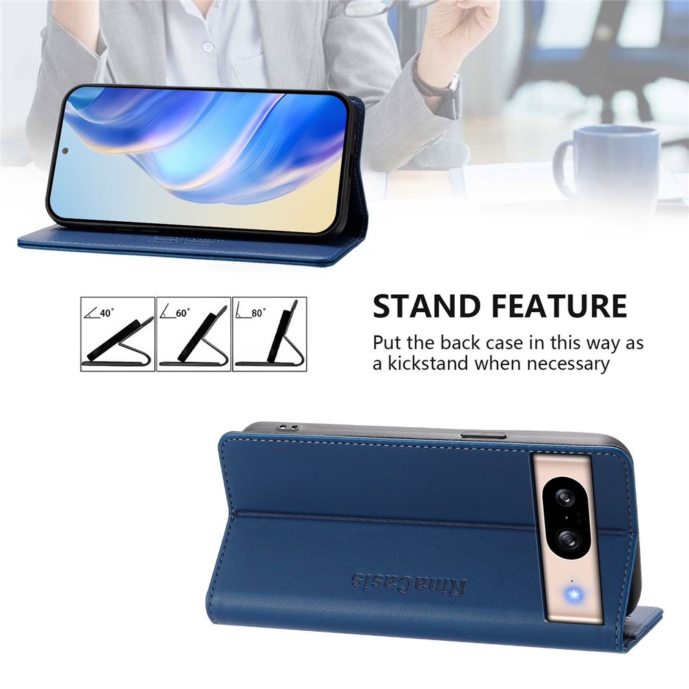 For Google Pixel 8 Leather Case RINACASIS RC01 Phone Cover with RFID Blocking Wallet Stand – Dark Blue
