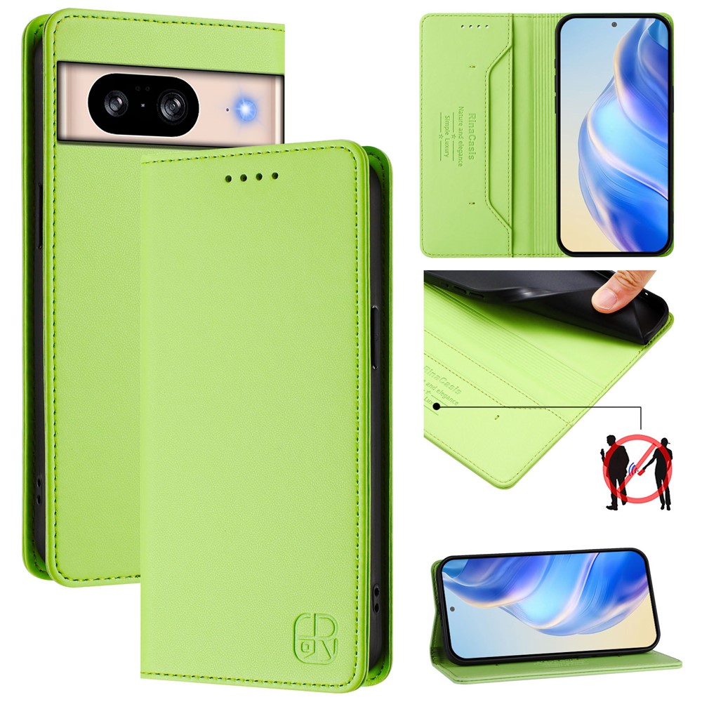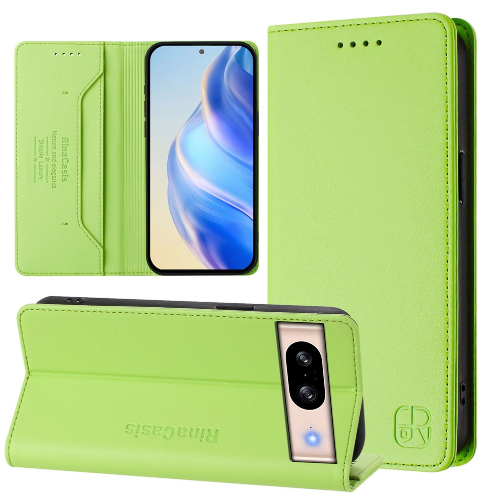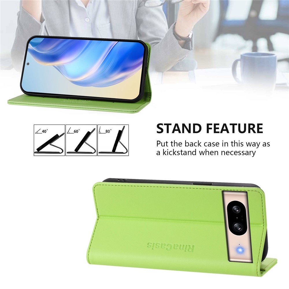 For Google Pixel 8 Leather Case RINACASIS RC01 Phone Cover with RFID Blocking Wallet Stand - Green