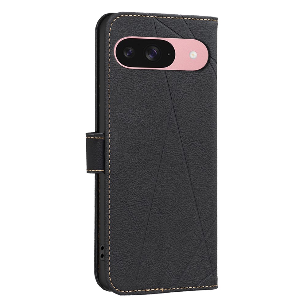 For Google Pixel 8 Pro Case BINFEN COLOR BF35 Geometry Imprinted Leather Phone Cover RFID Blocking Wallet Stand - Black