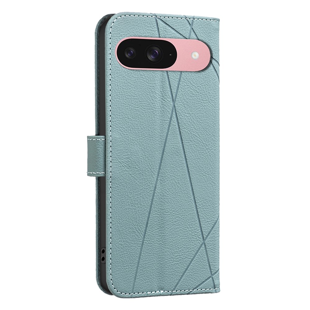 For Google Pixel 8 Pro Case BINFEN COLOR BF35 Geometry Imprinted Leather Phone Cover RFID Blocking Wallet Stand - Green