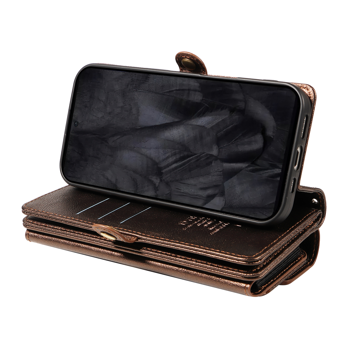 For Google Pixel 8 Pro Case YIKATU YK-008 Zipper Wallet Leather Phone Cover with Shoulder Strap – Brown