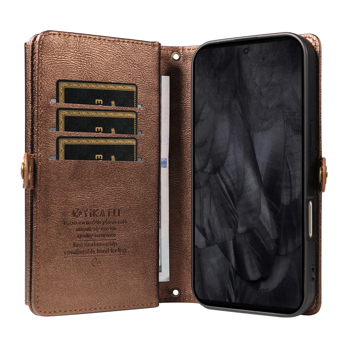 For Google Pixel 8 Pro Case YIKATU YK-008 Zipper Wallet Leather Phone Cover with Shoulder Strap - Brown $27.91