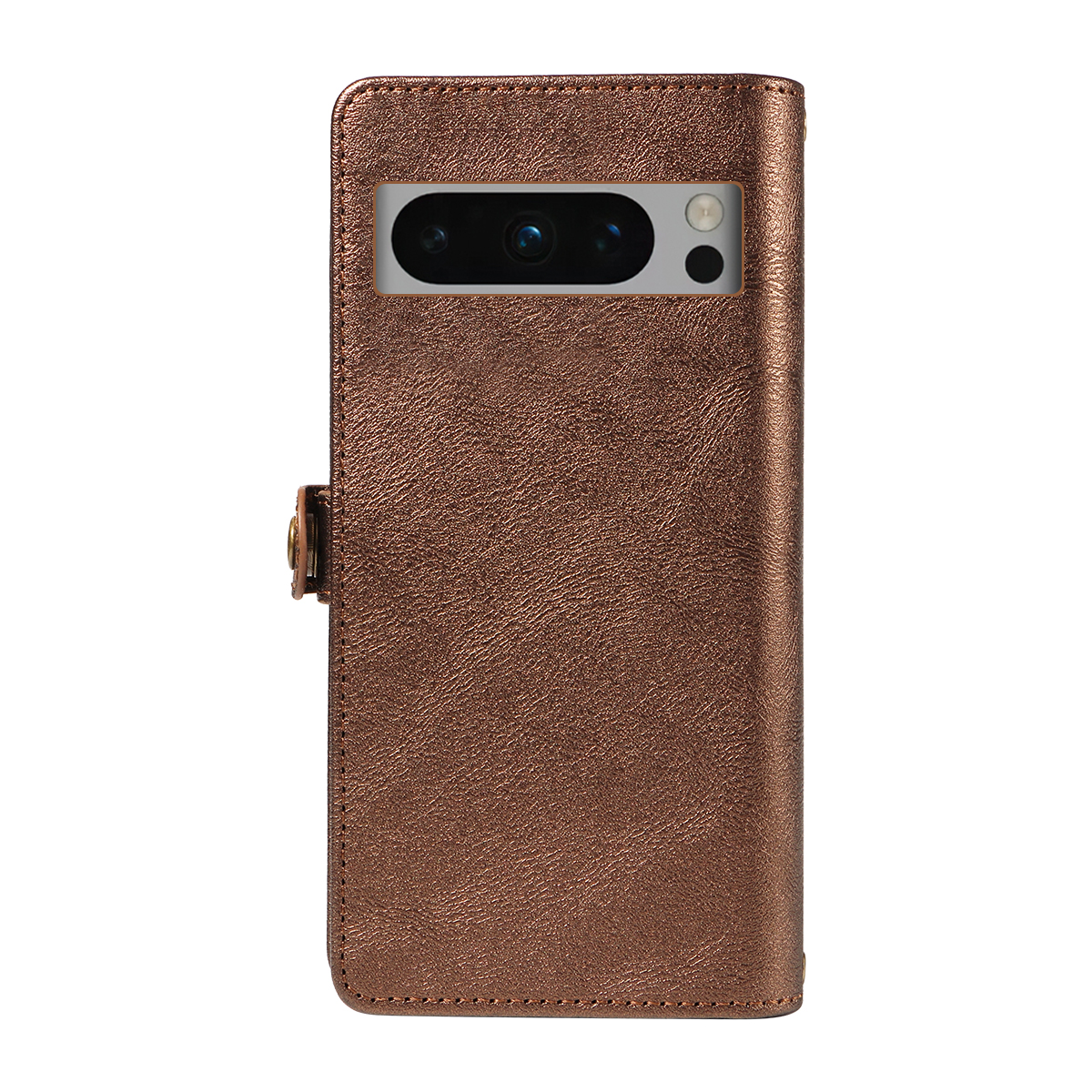 For Google Pixel 8 Pro Case YIKATU YK-008 Zipper Wallet Leather Phone Cover with Shoulder Strap - Brown