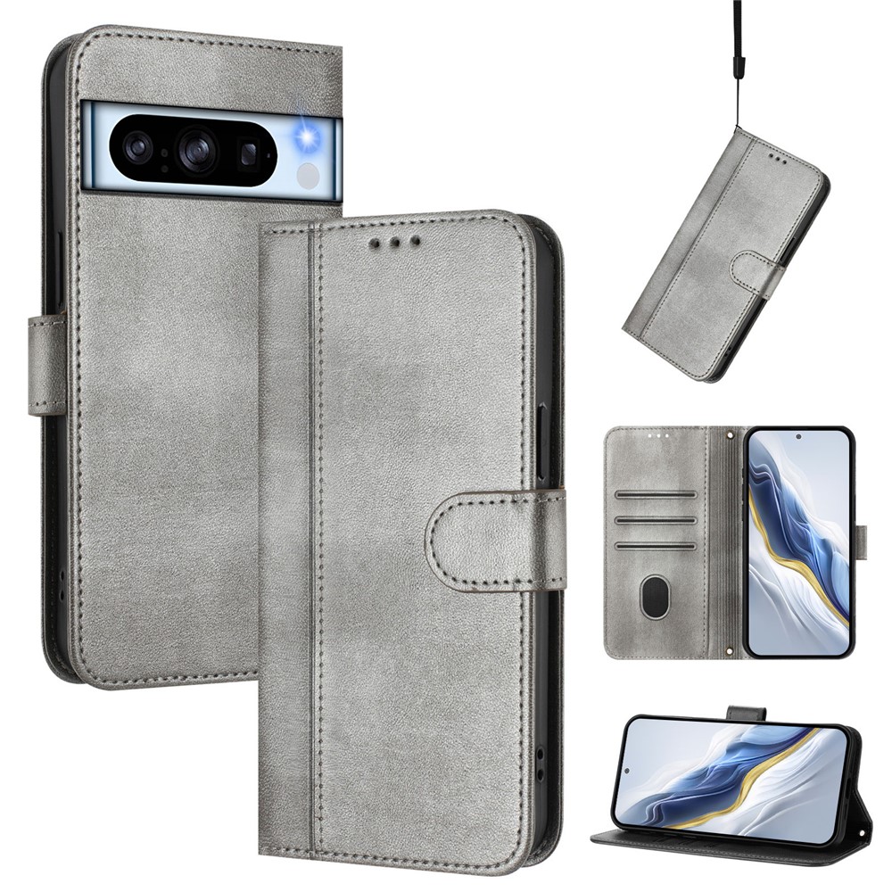 For Google Pixel 8 Pro Cases Wallet Stand Retro Texture Leather Phone Cover with Lanyard – Grey