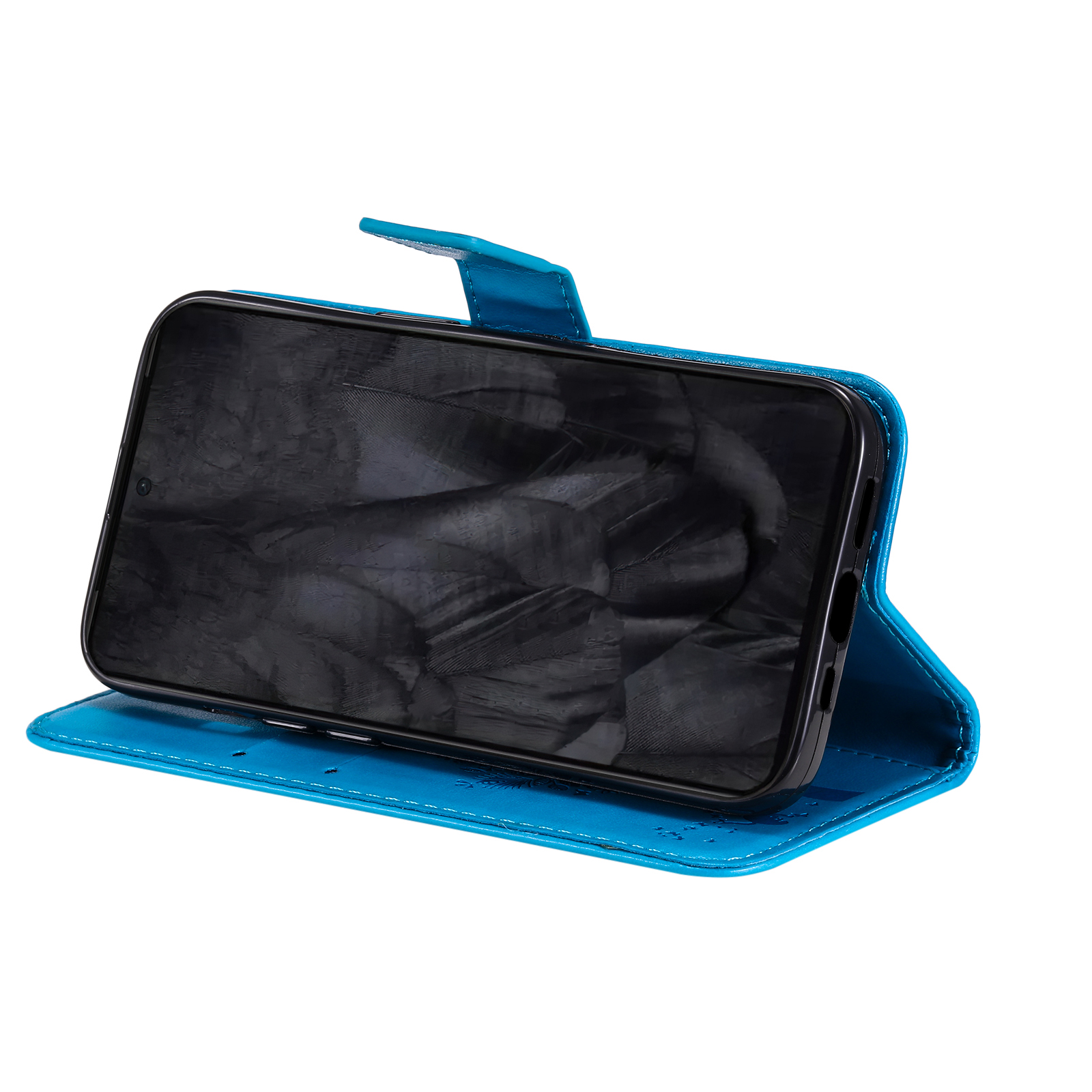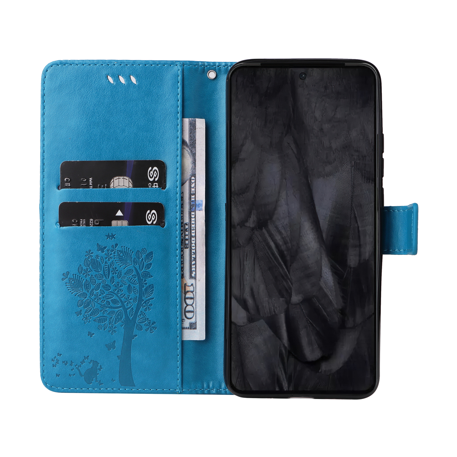 For Google Pixel 8 Pro Phone Case with Stand Cat Tree Pattern Leather Wallet Mobile Cover – Blue